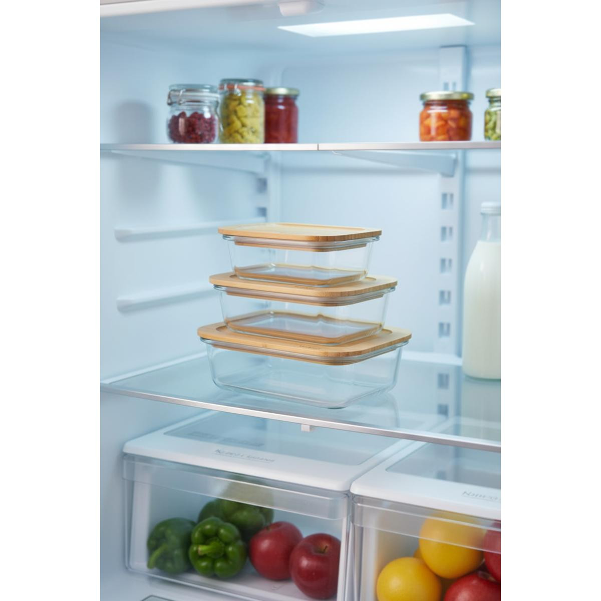 Bambum Lavi Dikdörtgen 3'lü Set Bambu Saklama Kapları