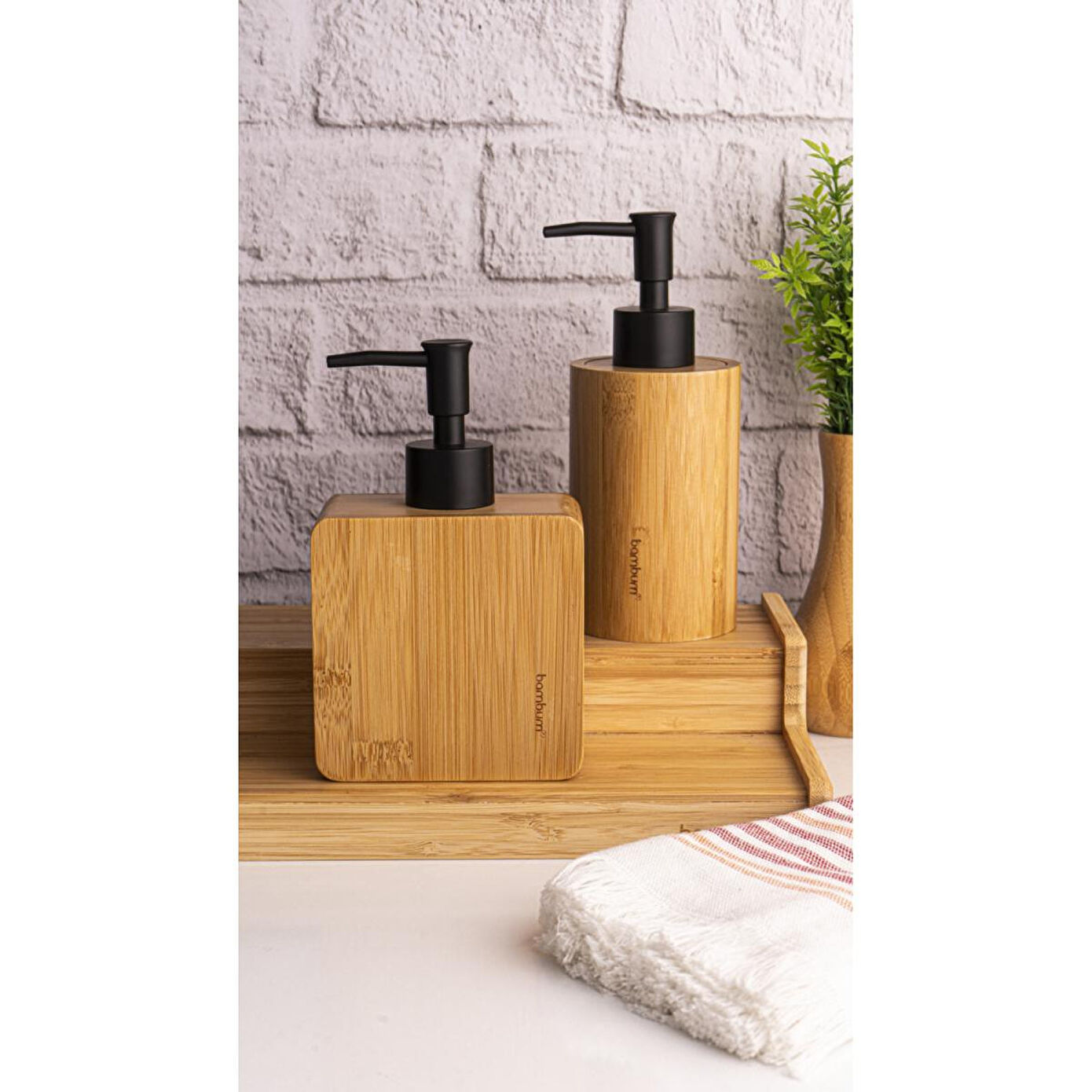 - Doğal bambu malzemesiyle üretilmiş, dayanıklı ve uzun ömürlü kullanım sunar.; - Kahverengi renk seçeneği ile mutfak veya banyonuzda şık bir görünüm sağlar.; - İki parçadan oluşan set, hem sabun hem de şampuan saklama ihtiyacınızı karşılar.