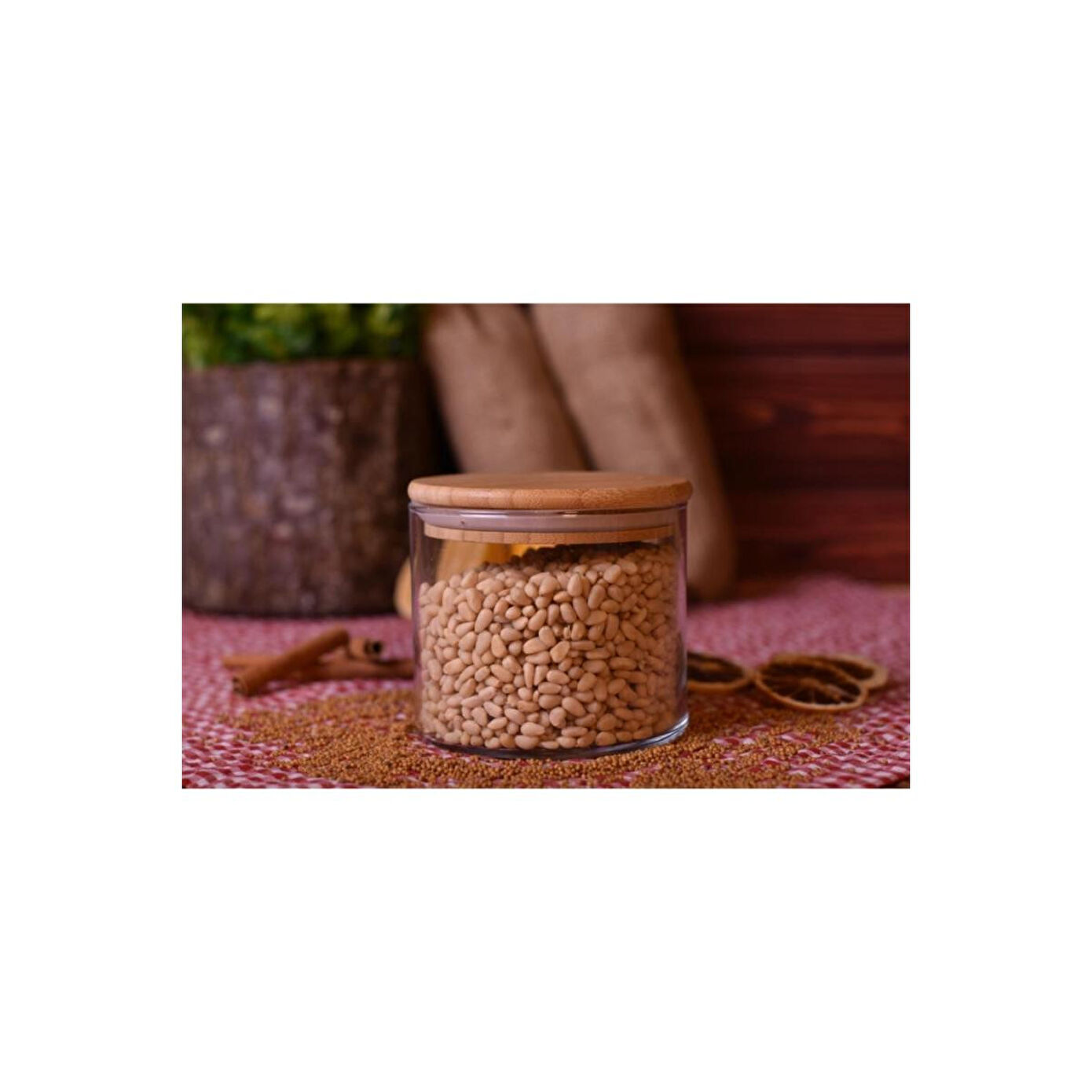 Bambum cam saklama kabı ; Ölçü: 11,2cm x 10 cm ; Hacim: 700 ml ; Bambu hava sızdırmaz ; Bambu kaşık ; Elle üfleme tekniği ; El yapımı ; Gıdaya uygun ; Bulaşık makinesinde yıkanabilir ;