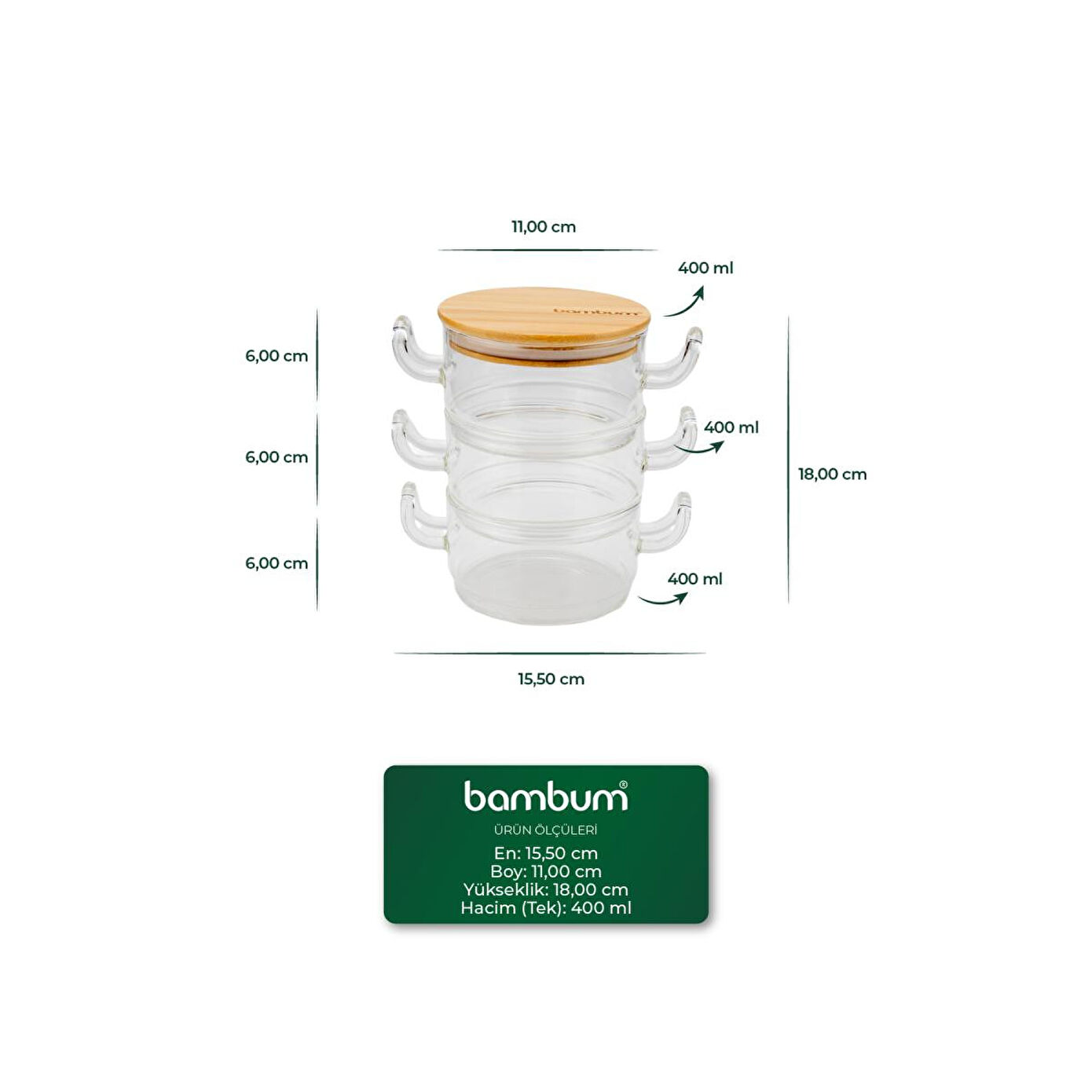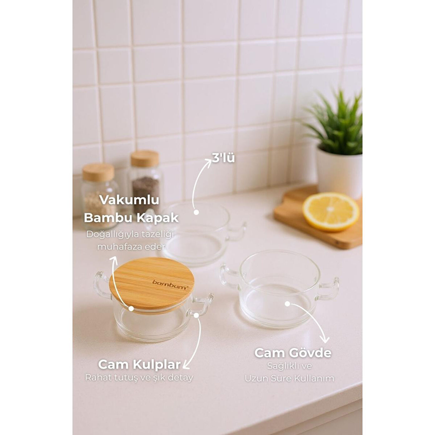 Bambum Modena 3'lü Bambu Kapaklı Cam Saklama Kabı