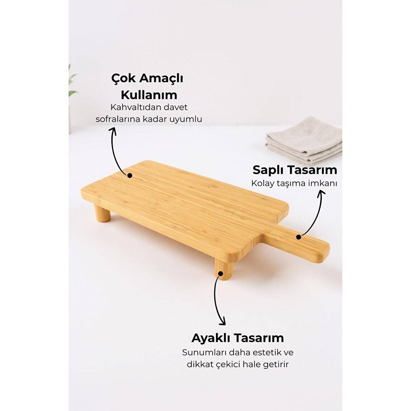 - Bambu malzemesinden üretilmiş olup, doğal ve çevre dostu bir sunum deneyimi sağlar.; - Geniş tasarımı sayesinde büyük porsiyonları rahatça sergileme imkanı sunar.; - Ayaklı yapısı ile kolayca taşınabilir ve istenilen yere yerleştirilebilir; pratik kullanım sağlar.; - Şık ve modern görünümüyle sofralarınıza estetik bir dokunuş katar.