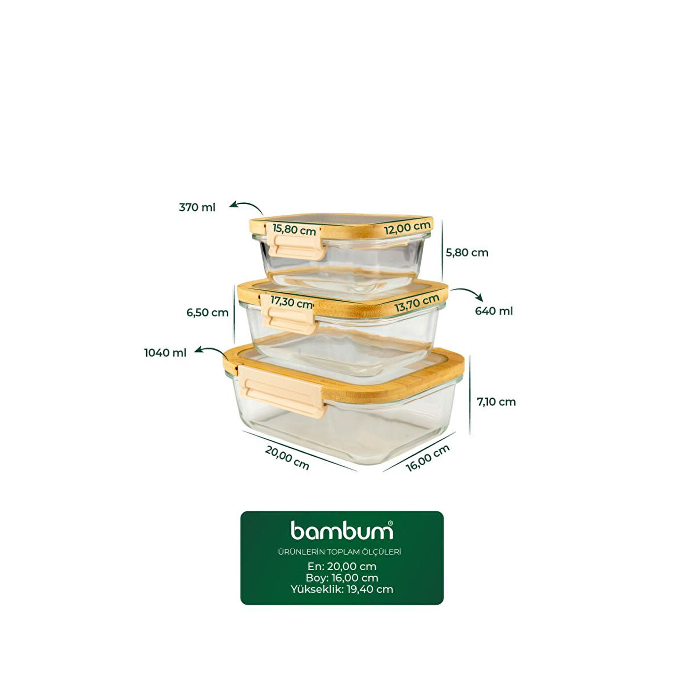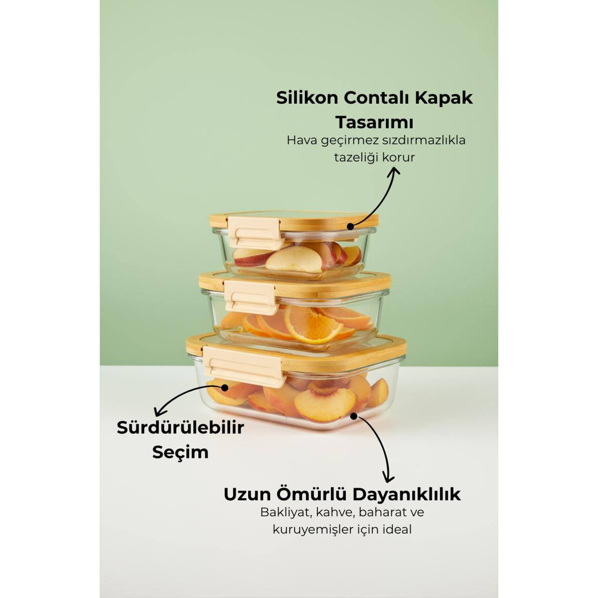 - Bambum Moira 3'lü Saklama Seti, mutfak tezgahınızı düzenlemek için ideal bir çözüm sunar.; - Üç farklı boyutta saklama kabı, çeşitli yiyecek ve malzemeleri saklamanız için geniş alan sağlar.; - Bambu malzemesi sayesinde doğal ve çevre dostu bir kullanım sunar, aynı zamanda dayanıklıdır.; - Şık tasarımıyla mutfak dekorasyonunuza modern bir dokunuş katar.; - Kolay temizlenebilir yapısı ile pratik kullanım imkanı sağlar.;