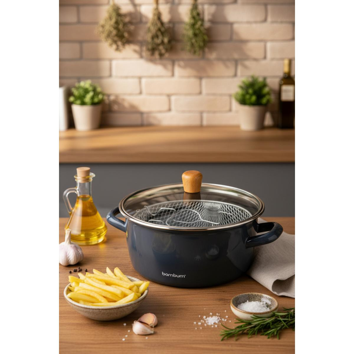 Bambum Nostalji Kızartma Tenceresi Koyu Gri 22 Cm