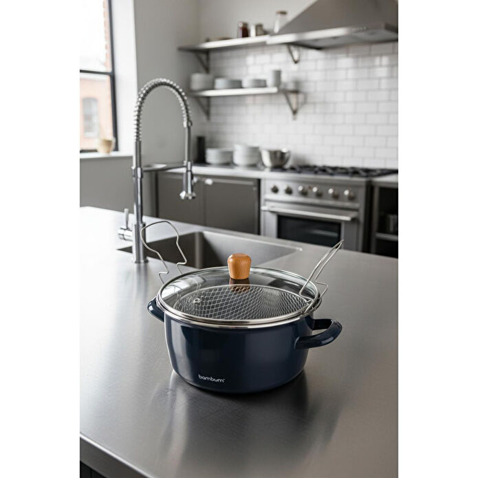 - Nostaljik tasarımıyla mutfaklarınıza şıklık katan Bambum Kızartma Tenceresi, koyu gri renk seçeneğiyle modern ve klasik bir görünüm sunar.; - 22 cm çapındaki geniş yüzeyi sayesinde geniş kızartmalarınızı rahatlıkla hazırlayabilirsiniz.; - Bambum'un özel üretim teknolojisi ile üretilen bu tencere, dayanıklılığı ve uzun ömürlü kullanımı ile öne çıkar.; - Isıya dayanıklı yapısı sayesinde yüksek sıcaklıklarda bile güvenle kullanabilirsiniz.; - Kolay temizlenebilir yüzeyi ile pratik bir kullanım sağlar; böylece mutfak işlerinizde zamandan tasarruf edersiniz.;