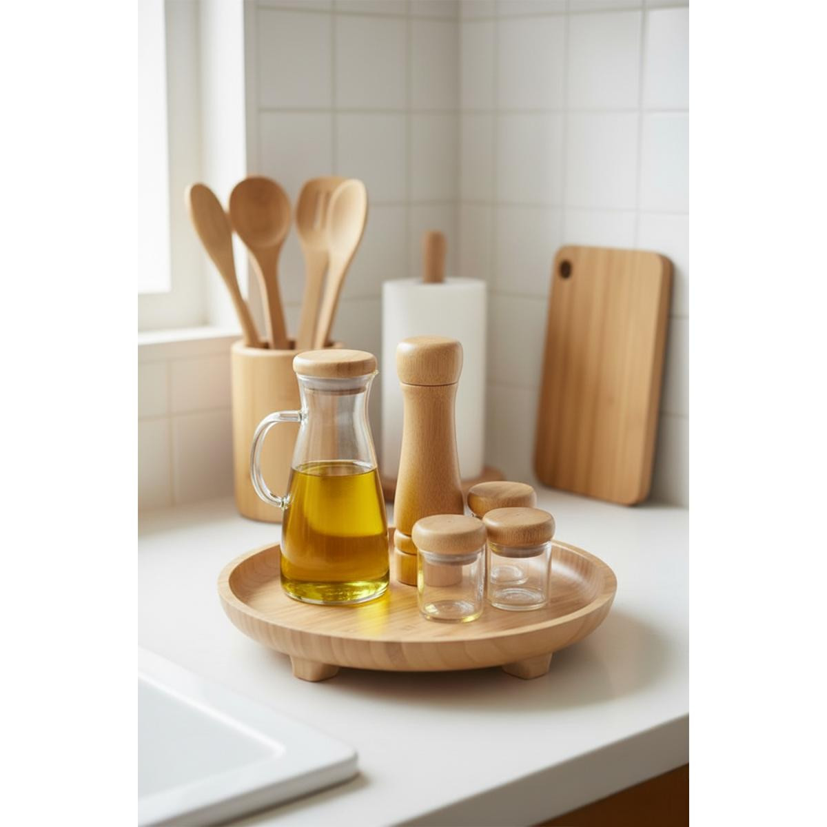 Doğal bambu malzemesi ile üretilmiş, çevre dostu ve sürdürülebilir bir kullanım sunar.; Tek parça halinde gelen bu ayaklı sunum tepsisi, şık bir tasarıma sahiptir.; Yuvarlak formu sayesinde çeşitli yiyecekleri rahatça servis edebilir ve sunabilirsiniz.; Büyük boyutu ile mutfak tezgahınızda veya masanızda yer kaplamadan pratik bir kullanım sağlar.