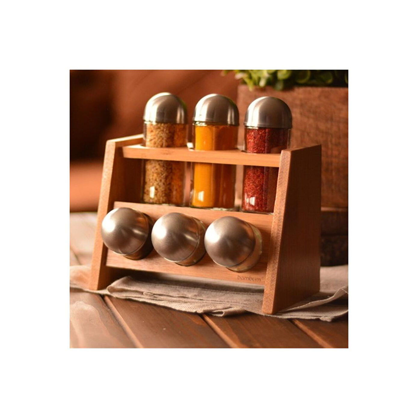 Bambum Paciro 6’lı Baharatlık, Yatay Yapısı, Bambu Gövdesi Ve 6 Adet Çelik Kapaklı Cam Şişesi İle Mutfağınızın Vazgeçilmezi Olacak.; Pacito, Pratik Kullanımı Sayesinde Dilerseniz Yemek Yaparken, Dilerseniz Yemek Sofralarınızda En Önemli Yardımcılarınızdan Olacak.; Materyal: Bambum - Cam Ürün Boyutları: 19 x 12 x 17 cm