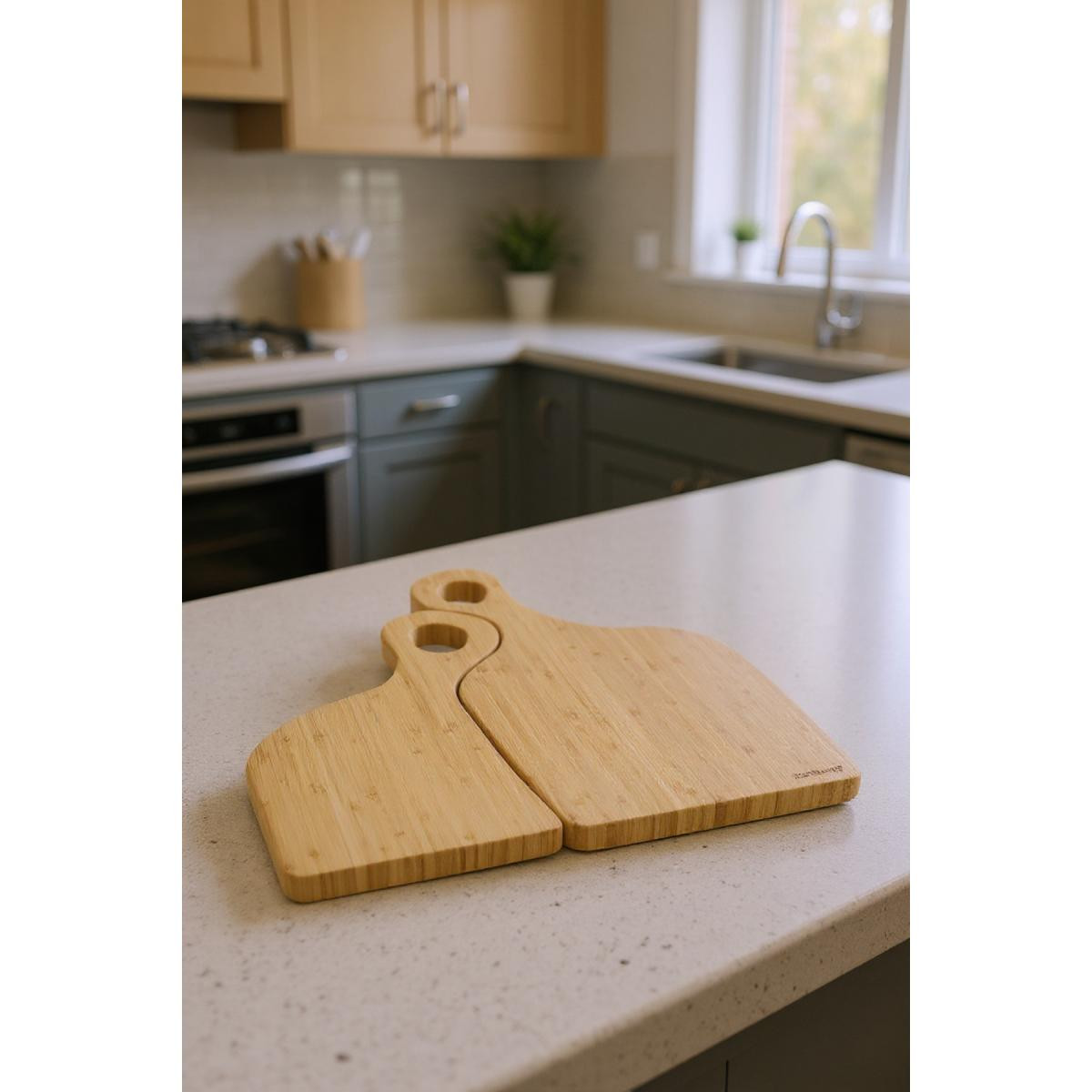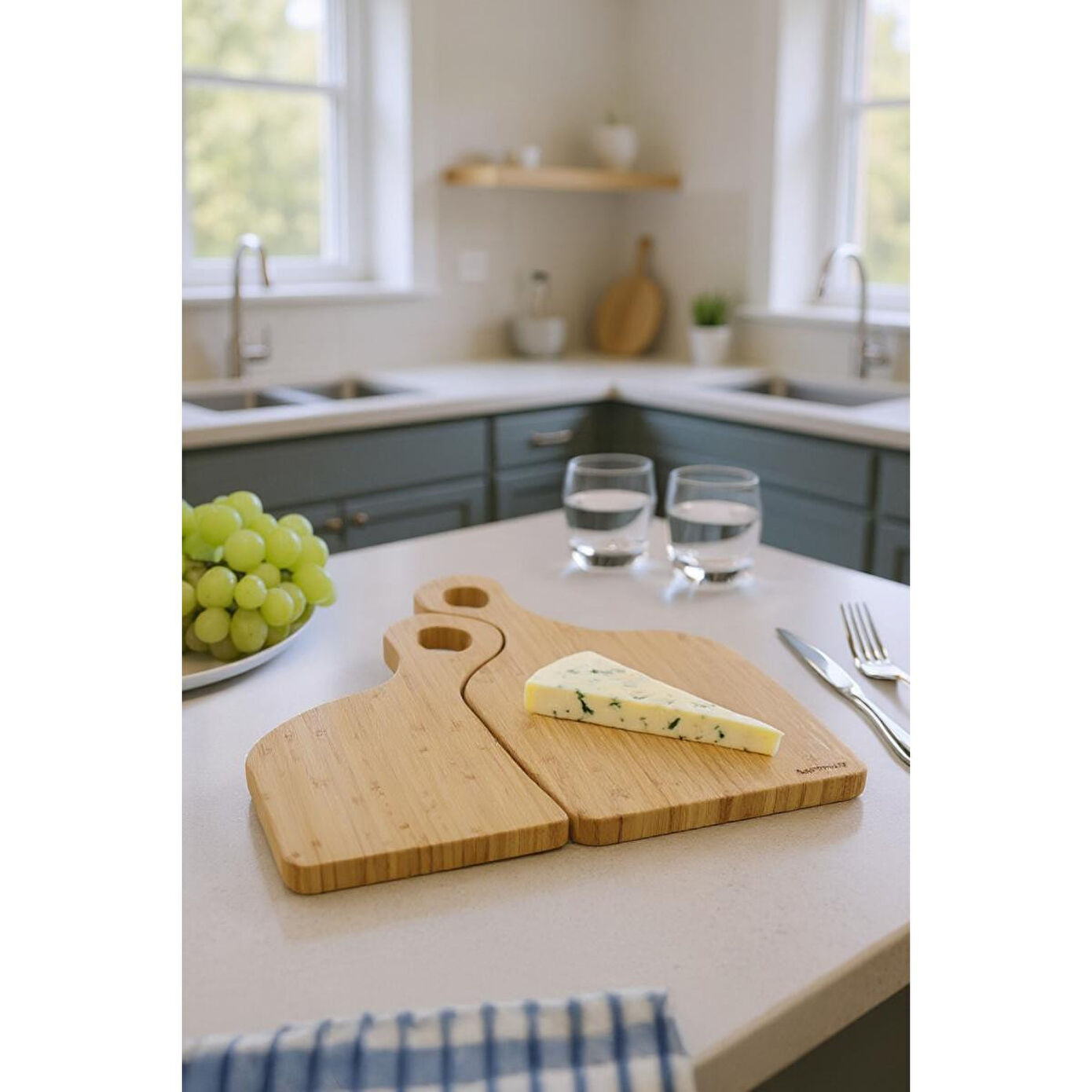 - Doğal bambu malzemesinden üretilmiş, dayanıklı ve uzun ömürlü kullanım sunar.; - İki adet kesme tahtası ile mutfak işlerinizi kolaylaştırır; hem büyük hem de küçük boyutlarda pratik çözümler sağlar.; - Bambu yapısı sayesinde hafif olup, taşıması kolaydır ve mutfakta rahat hareket etmenize olanak tanır.; - Çizilmelere karşı dirençli yüzeyi ile bıçaklarınızın ömrünü uzatırken, yiyeceklerinizin tazeliğini korur.; - Estetik görünümüyle mutfağınıza doğal bir dokunuş ekler ve şıklığıyla göz doldurur.;