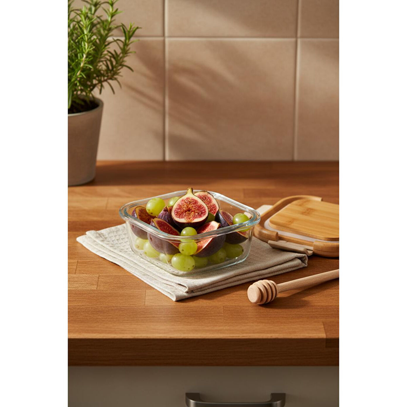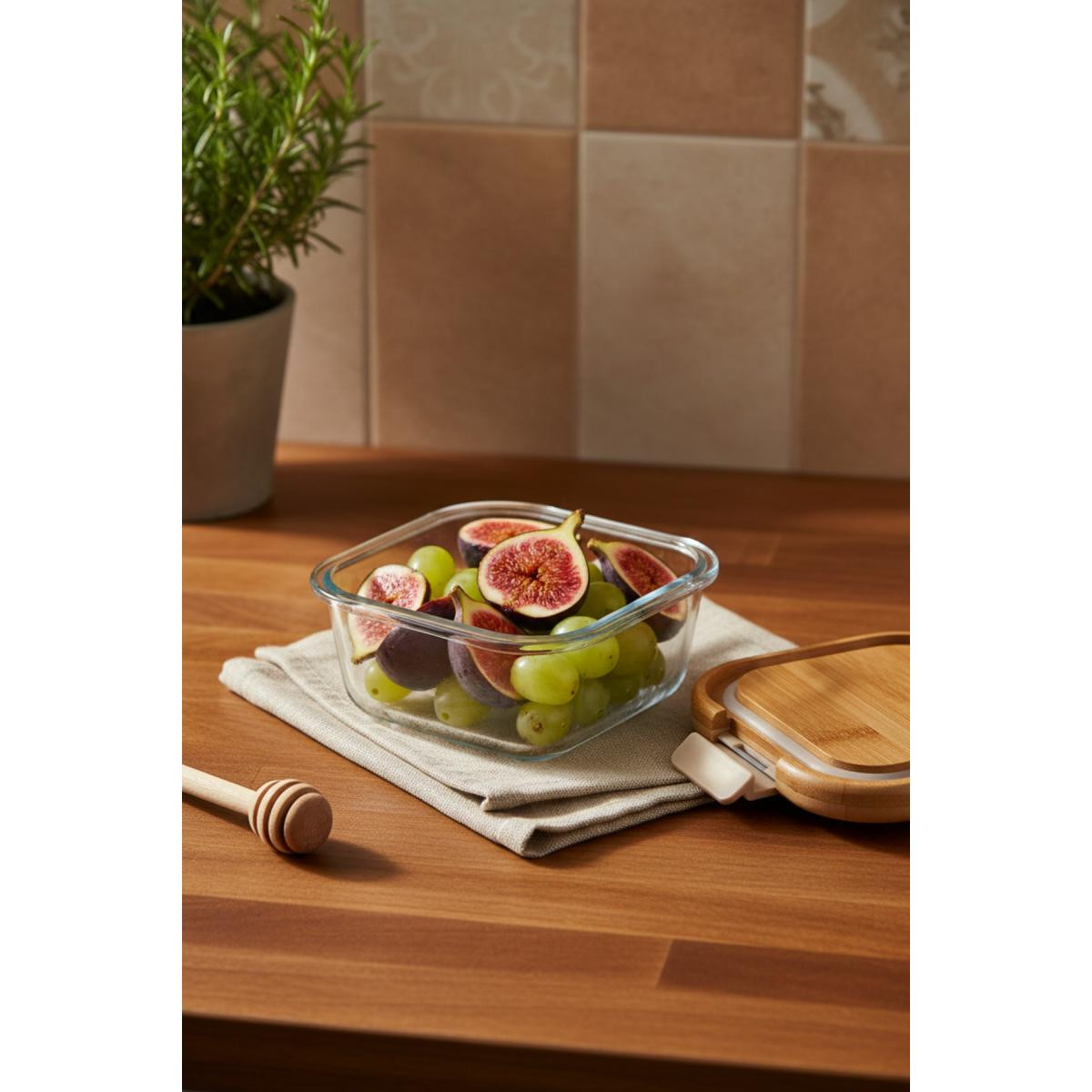 - Bambum Patina kilitli cam saklama kabı, 320 ml kapasitesiyle yiyeceklerinizi taze ve düzenli bir şekilde saklamanızı sağlar.; - Kilitli yapısı sayesinde, içerisindeki yiyeceklerinizi hava almadan korur ve tazeliğini uzun süre muhafaza eder.; - Şık ve modern tasarımıyla mutfak dekorasyonunuza estetik bir dokunuş katar.; - Kolay temizlenebilir cam malzemesi, hijyenik kullanım sunar ve leke tutmaz özelliğiyle pratik bir temizlik imkanı tanır.;