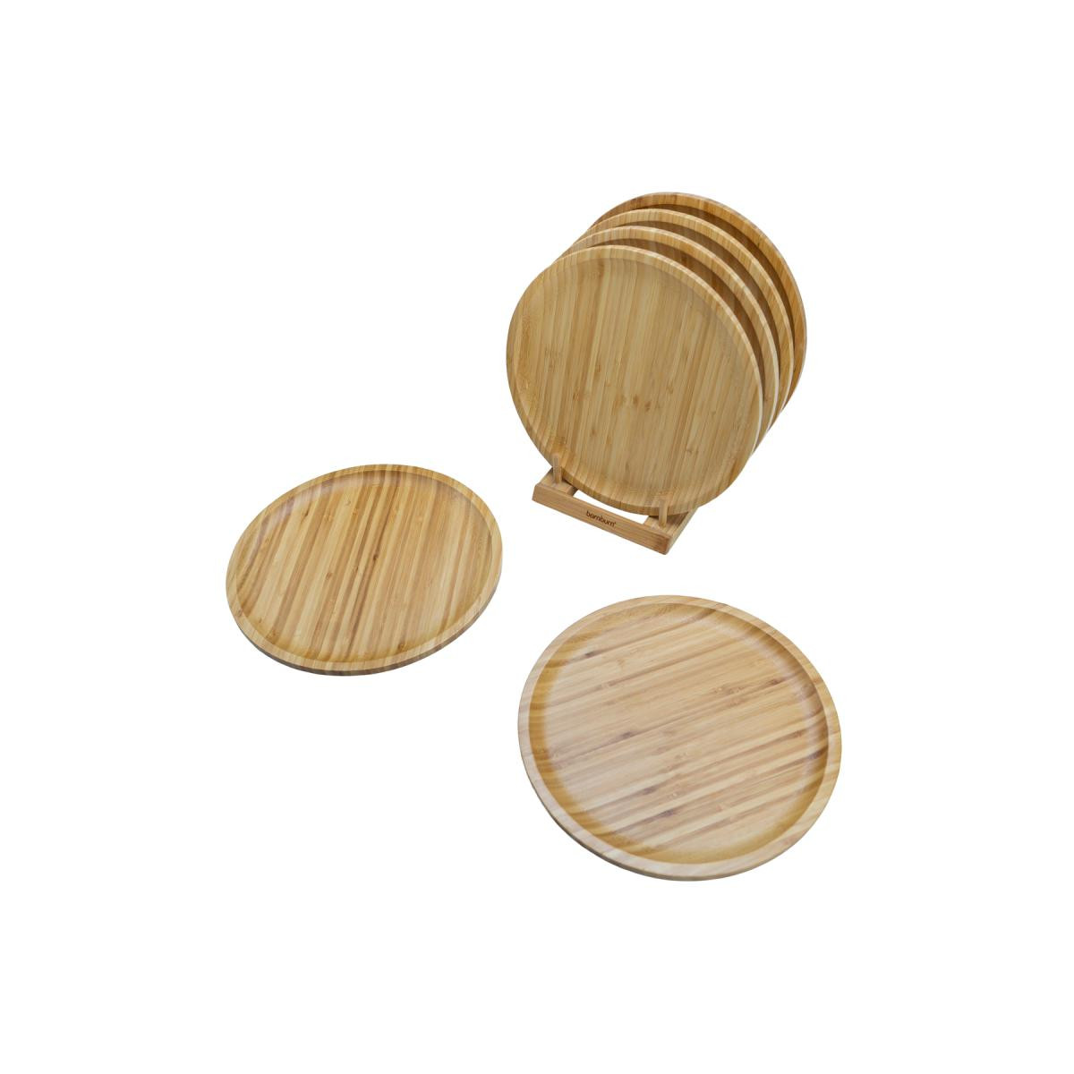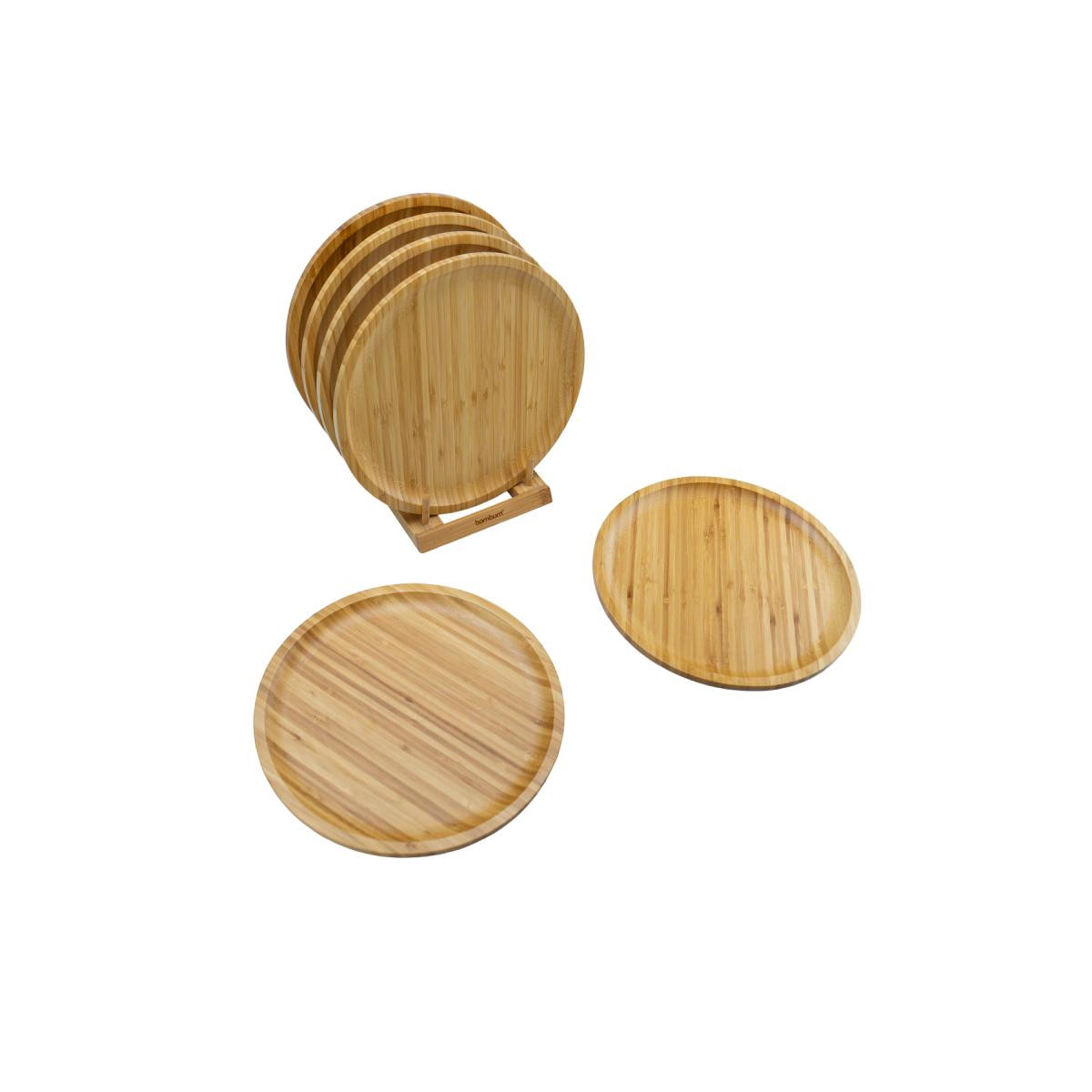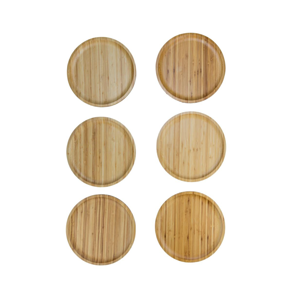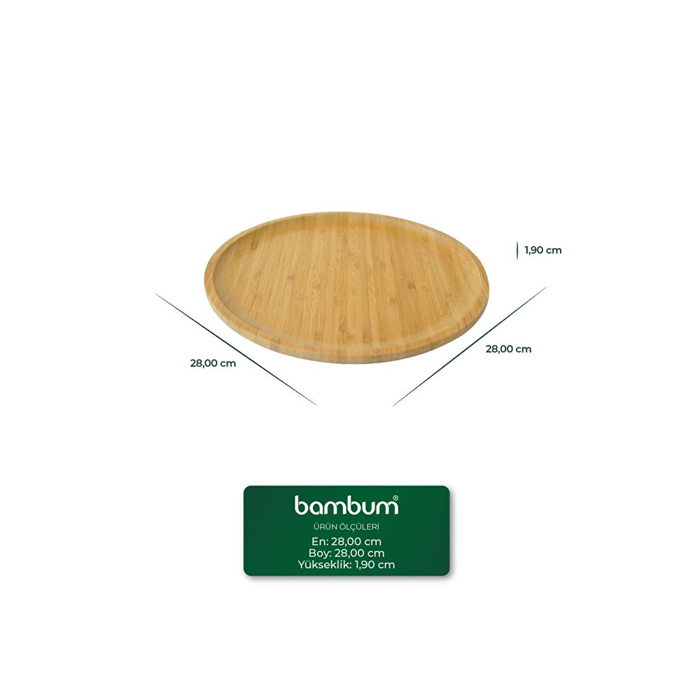 - 6 parçadan oluşan set, her türlü sofra düzeninize uyum sağlayacak şık tasarımıyla dikkat çeker.; - Yuvarlak formu sayesinde, çeşitli yemeklerinizde kolayca servis yapmanızı sağlar.; - Dayanıklı bambu malzemesi ile uzun ömürlü kullanım sunar ve mutfakta hijyenik bir ortam oluşturur.; - 28 cm boyutundaki bu set, hem büyük porsiyonları rahatça servis etmenizi hem de küçük tabaklarla daha samimi sofralar hazırlamanızı mümkün kılar.;