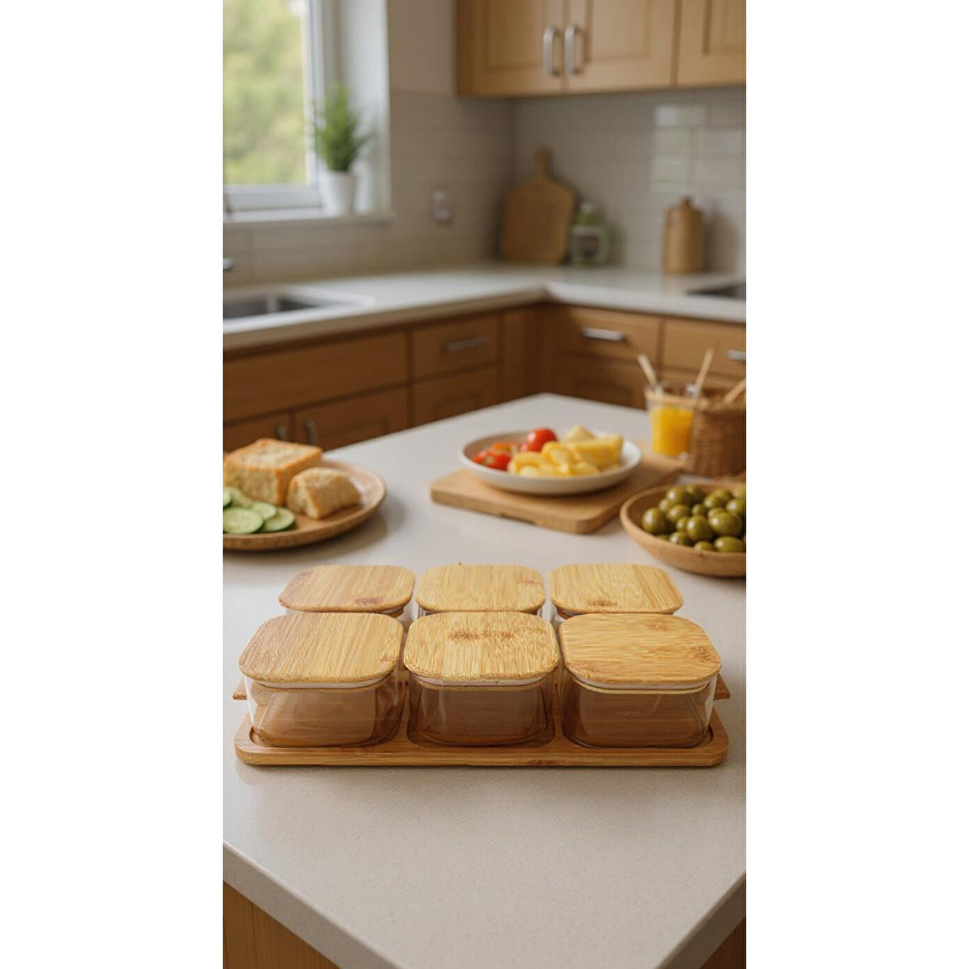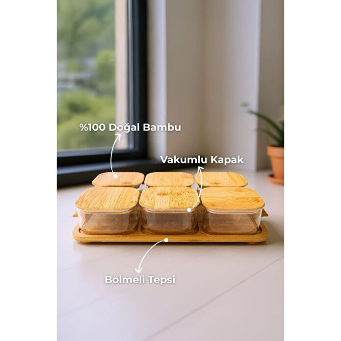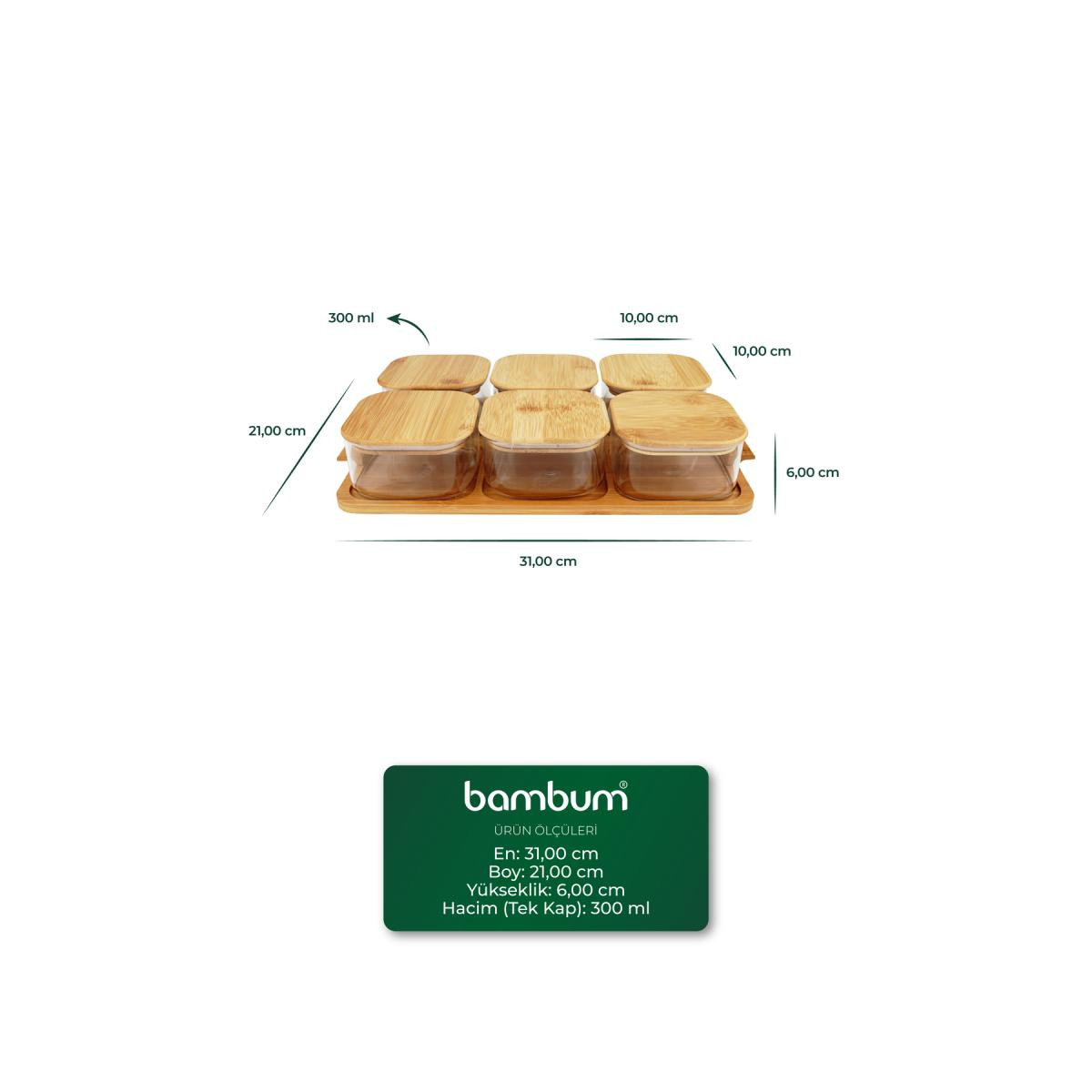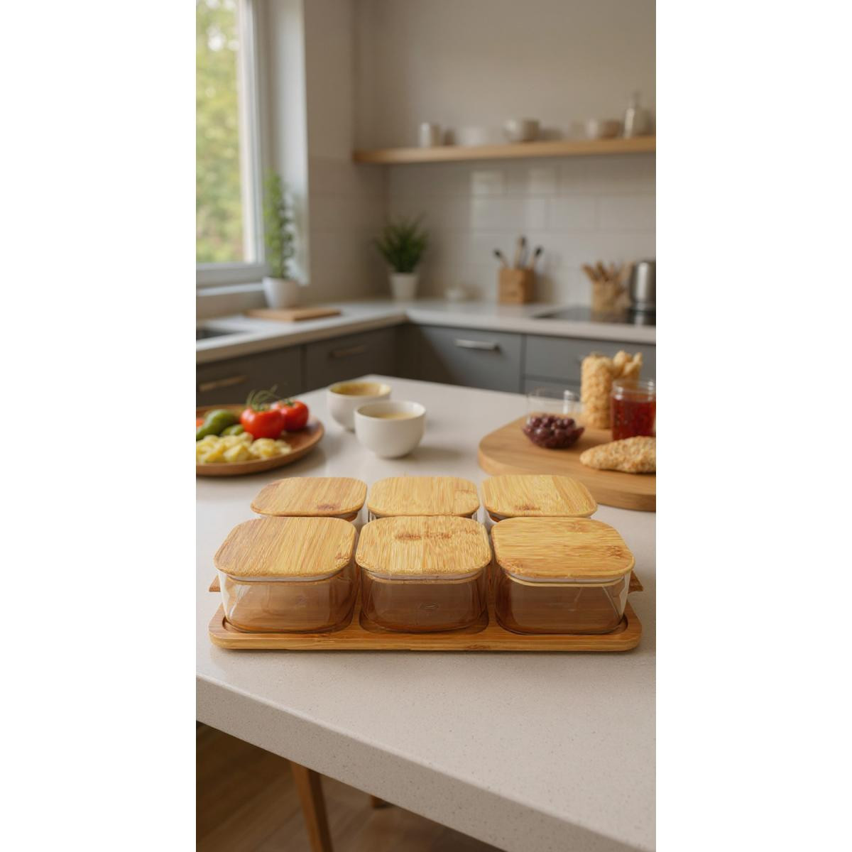 - Bambu malzemesinden üretilmiş olup, doğal ve çevre dostu bir kullanım sunar.; - Altı parçadan oluşan set, farklı boyutlardaki kahvaltılıkları düzenli bir şekilde saklamanızı sağlar.; - Dayanıklı yapısı sayesinde uzun süreli kullanıma uygundur ve kolay temizlenebilir özelliğiyle pratik bir bakım imkanı tanır.; - Şık tasarımı ile mutfak dekorasyonunuza modern bir dokunuş eklerken, fonksiyonellikten ödün vermez.; - Ürünümüz 300 ml olmakla birlikte,ürün ebatları 21*31*6 cm'dir.