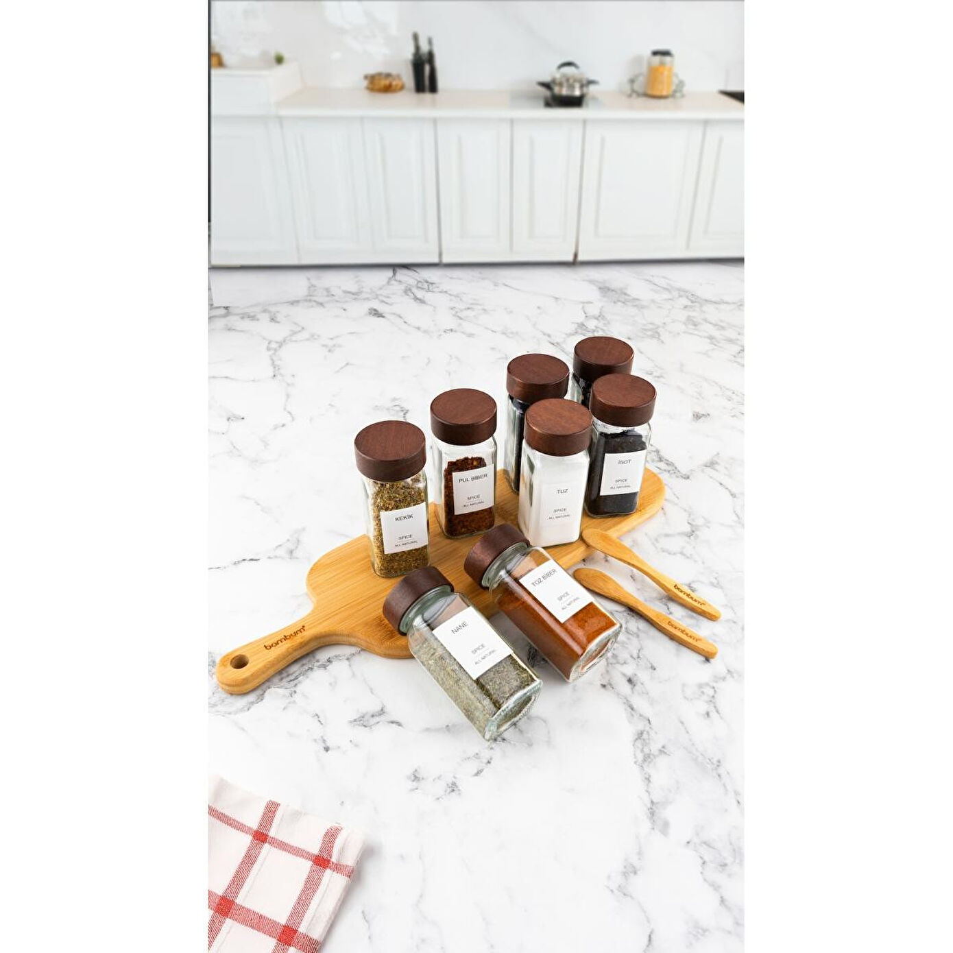 Bambum Ping Akasya Kapaklı 12'li Baharatlık Seti