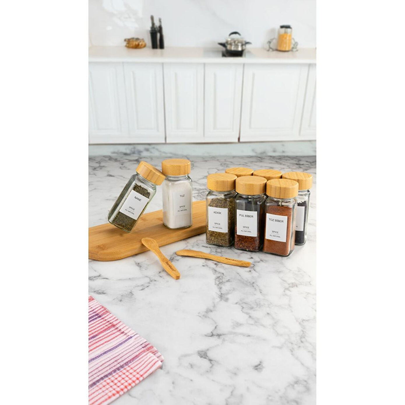 - Doğal bambu malzemesiyle üretilmiş, dayanıklı ve uzun ömürlü kullanım sunar.; - 12 parçadan oluşan set, mutfakta ihtiyacınız olan tüm baharatları düzenli bir şekilde saklamanızı sağlar.; - Kapaklı tasarımı sayesinde toz ve dökülme riskini minimize eder, temizliği kolaylaştırır.; - Şık ve modern görünümü ile mutfak dekorasyonunuza estetik bir dokunuş katar.
