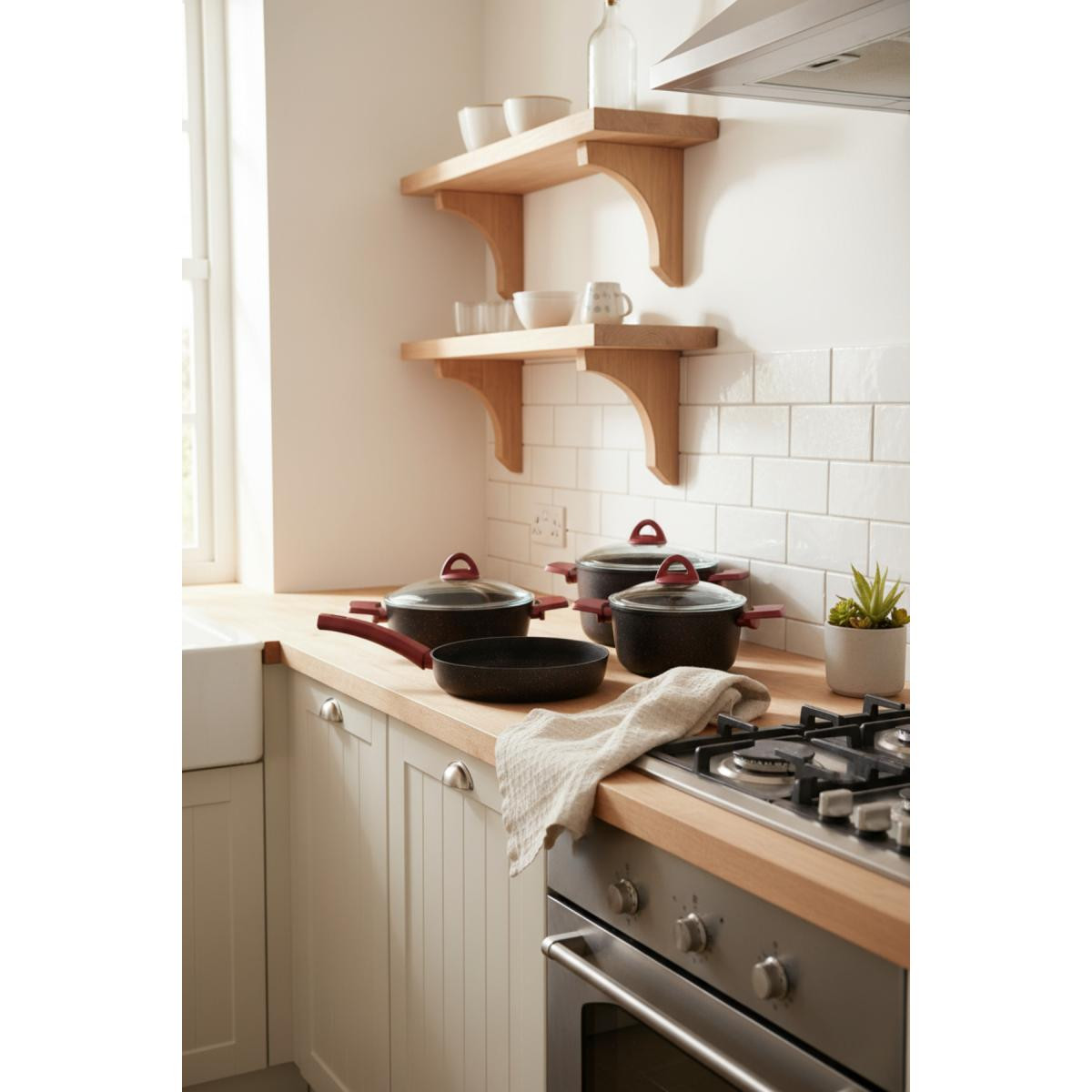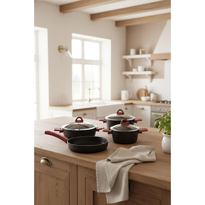 - Granit kaplama yüzeyi sayesinde yapışmaz özelliği ile yemeklerinizi kolayca pişirebilir ve temizleyebilirsiniz.; - 7 farklı boyut seçeneğiyle her türlü yemek ihtiyacınıza uygun tencere setini sunar.; - Siyah renkli tasarımı, mutfak dekorasyonunuza modern bir dokunuş katar.; - Bambum Pluto serisi, dayanıklılığı ve şık görünümü ile uzun süreli kullanım için idealdir.; - Ergonomik sap tasarımı, güvenli ve rahat bir kullanım sağlar.;