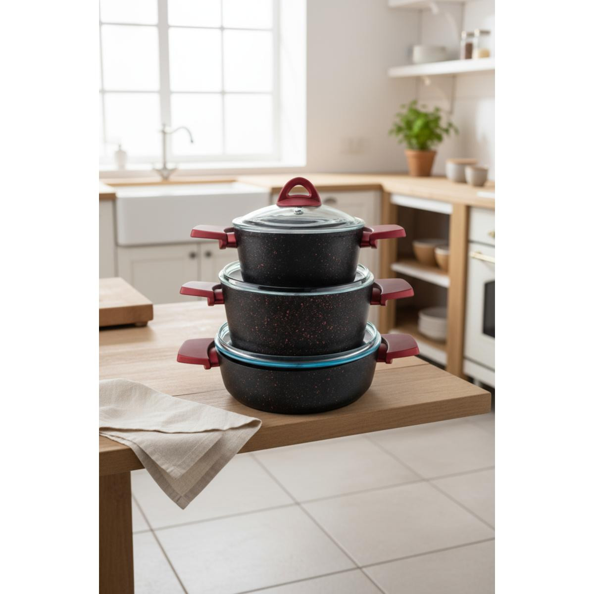 Bambum Pluto 7 Parça Granit Tencere Seti Siyah