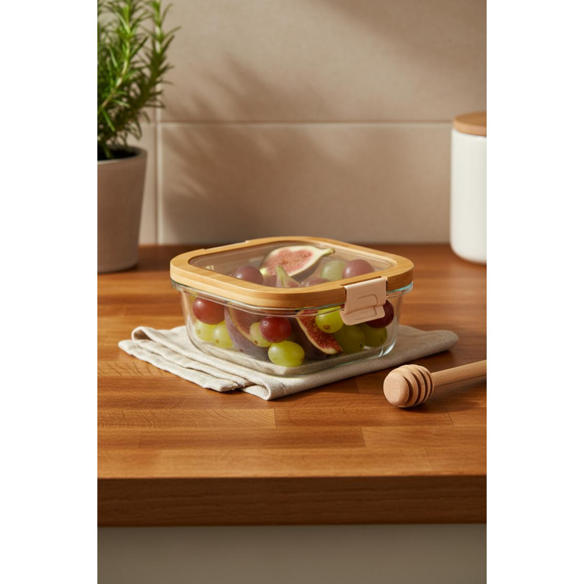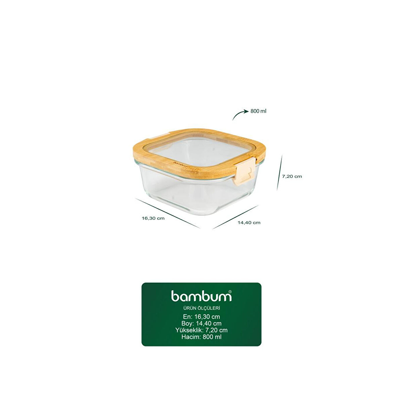 Bambum Poira Cam Kapaklı Kilitli Cam Saklama Kabı 800 Ml
