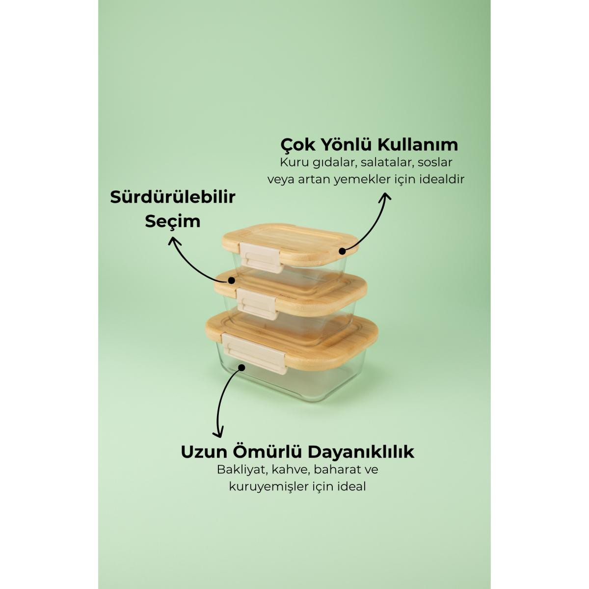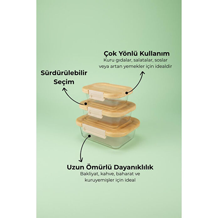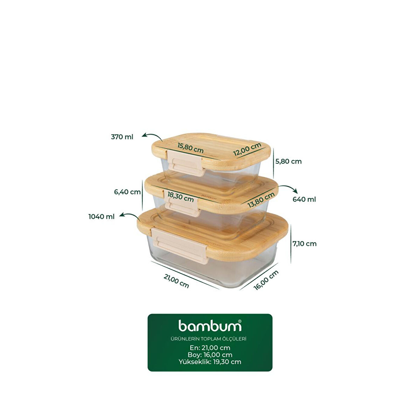 - Bambum Satina 3'lü saklama seti, mutfakta düzeni sağlamak için ideal bir çözümdür.; - Üç farklı boyutta kapaklı saklama kabı, çeşitli yiyeceklerinizi taze tutmanıza yardımcı olur.; - Bambu malzeme kullanımı, doğal bir görünüm ve dayanıklılık sunar.; - Kolay temizlenebilir yapısı ile pratik kullanım sağlar ve hijyenik bir ortam oluşturur.; - Şık tasarımıyla mutfak dekorasyonunuza modern bir dokunuş ekler.;