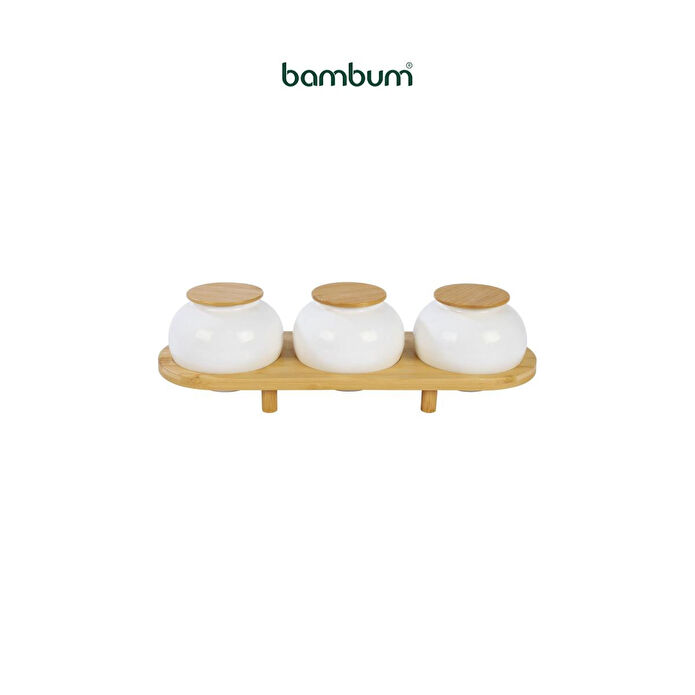 - Doğal bambu malzemesi sayesinde hem dayanıklı hem de çevre dostu bir kullanım sunar; - Üç adet baharatlık içeren set, mutfakta ihtiyaç duyulan farklı baharatları düzenli bir şekilde saklamanızı sağlar; - Standlı tasarımı ile baharatların kolayca erişilebilir olmasını ve mutfak tezgahınızda yer kaplamamasını sağlar;