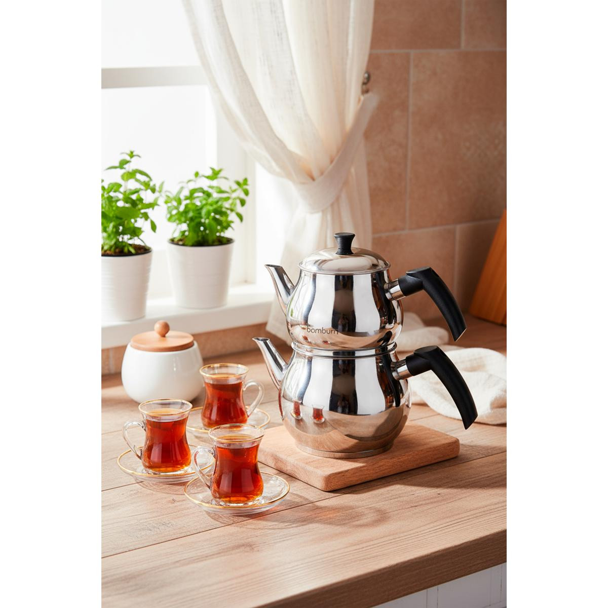 Dayanıklı çelik malzeme kullanımı sayesinde uzun ömürlü ve sağlam bir yapı sunar; Paslanmaz çelik yapısı ile kolay temizlenebilirlik ve hijyenik kullanım imkanı sağlar; Modern tasarımı ile mutfak dekorasyonunuza şık bir dokunuş ekler; Isıya dayanıklı yapısı sayesinde çay demleme işlemlerinde maksimum performans gösterir;