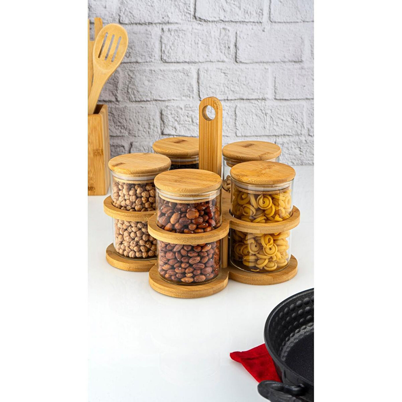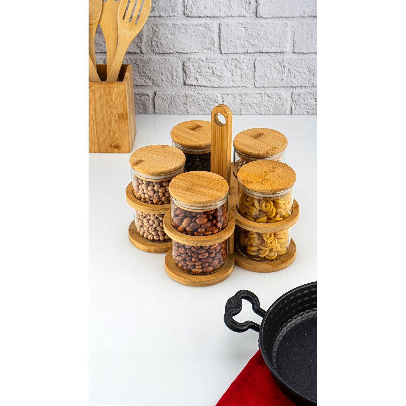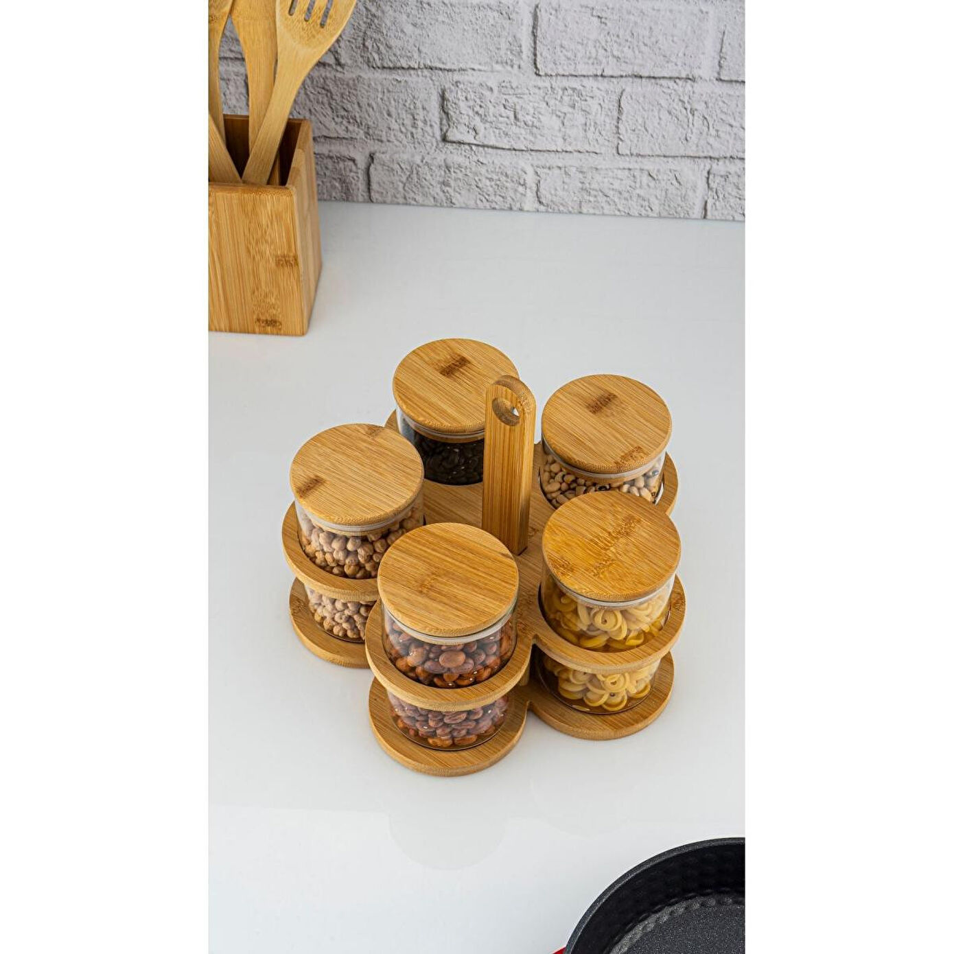 Doğal bambu malzemesi sayesinde hem dayanıklı hem de çevre dostu bir kullanım sunar; Altı parçadan oluşan set, mutfakta ihtiyaç duyulan baharatları düzenli ve kolayca erişilebilir hale getirir; Geniş tasarımı ile baharatlarınızı rahatça yerleştirebilir ve kullanabilirsiniz; Bambu yapısı sayesinde hafif ve taşıması kolaydır, mutfakta yer kaplamaz;