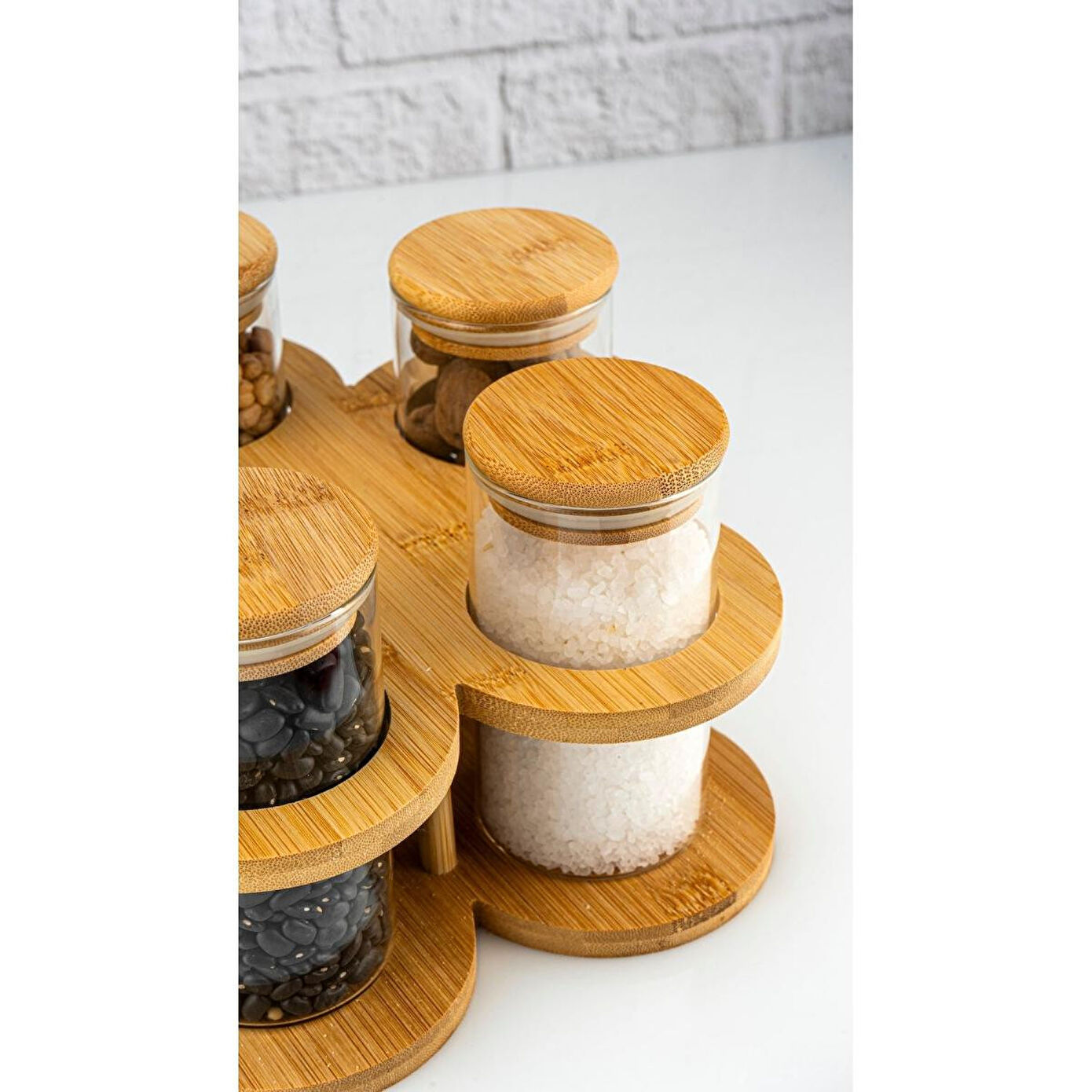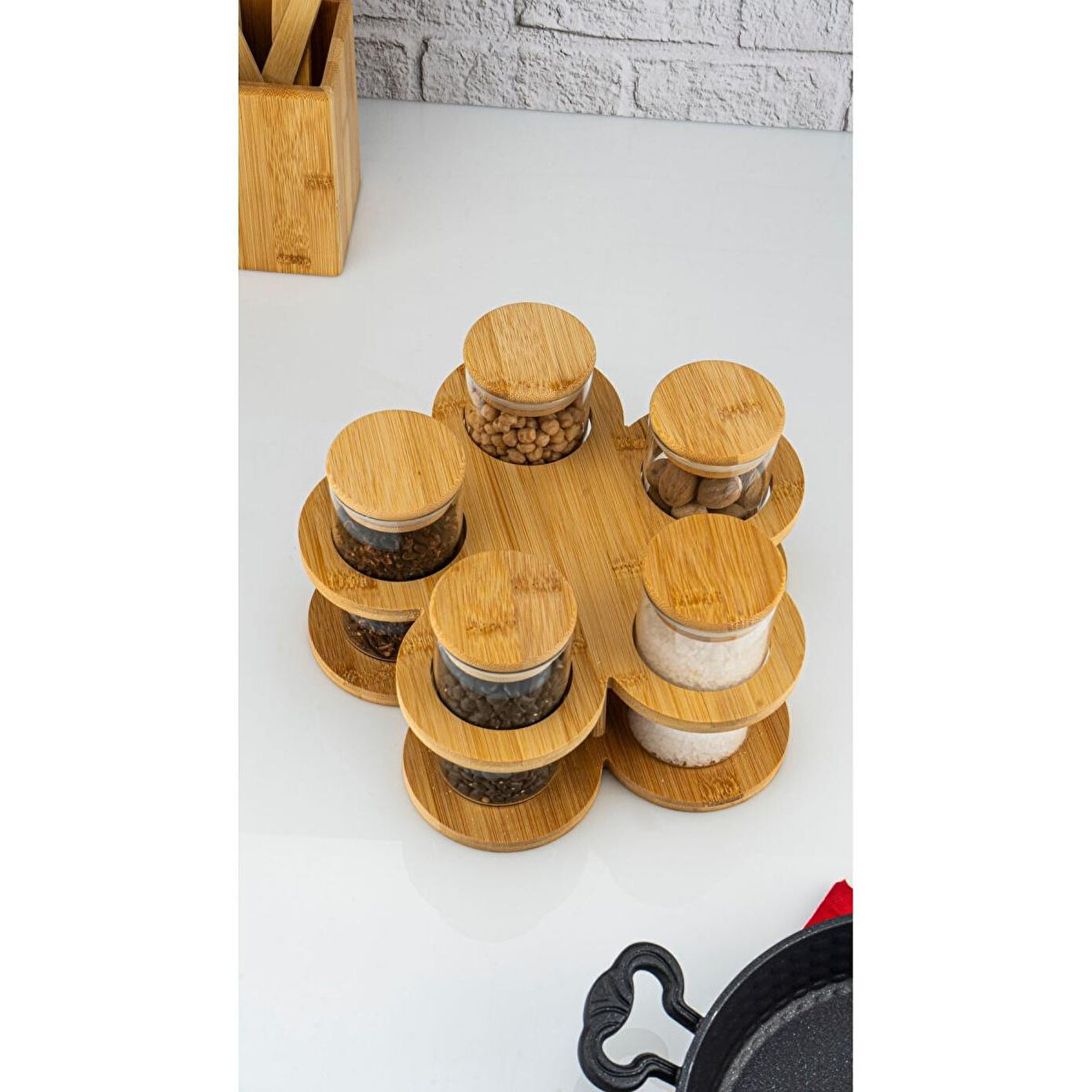 - Doğal bambu malzemesi sayesinde hem dayanıklı hem de çevre dostu bir kullanım sunar.; - 11 parçadan oluşan set, mutfakta ihtiyaç duyulan baharatları düzenli ve kolayca erişilebilir hale getirir.; - Standlı tasarımı ile baharatların dökülmesini önler ve mutfak tezgahınızda şık bir görünüm sağlar.