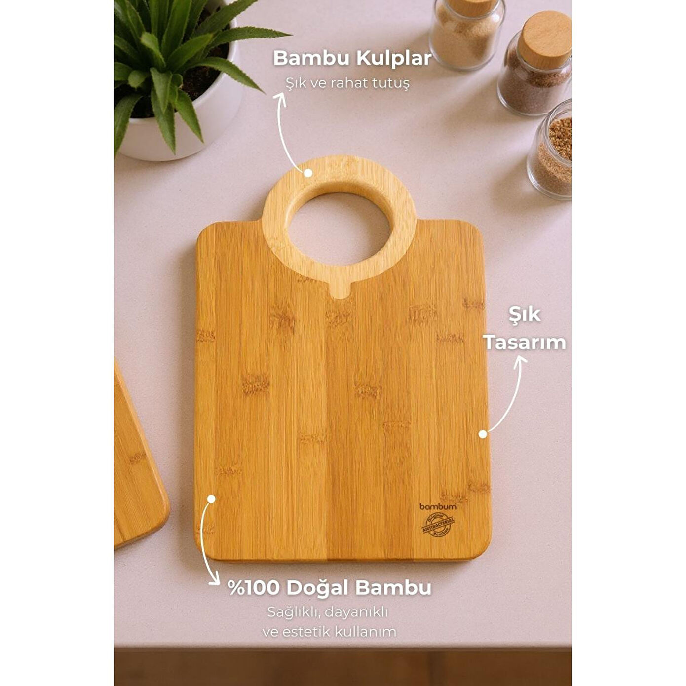 - Bambum Terasa, doğal bambudan üretilmiş olup, mutfakta şıklığı ve dayanıklılığı bir arada sunar.; - Keskin bıçakların kolayca kaymasını önleyen yüzeyi sayesinde güvenli ve pratik kullanım sağlar.; - Kolay temizlenebilir yapısı ile hijyenik bir mutfak deneyimi vadediyor.; - Estetik tasarımıyla mutfağınıza modern bir dokunuş eklerken fonksiyonellikten ödün vermez.