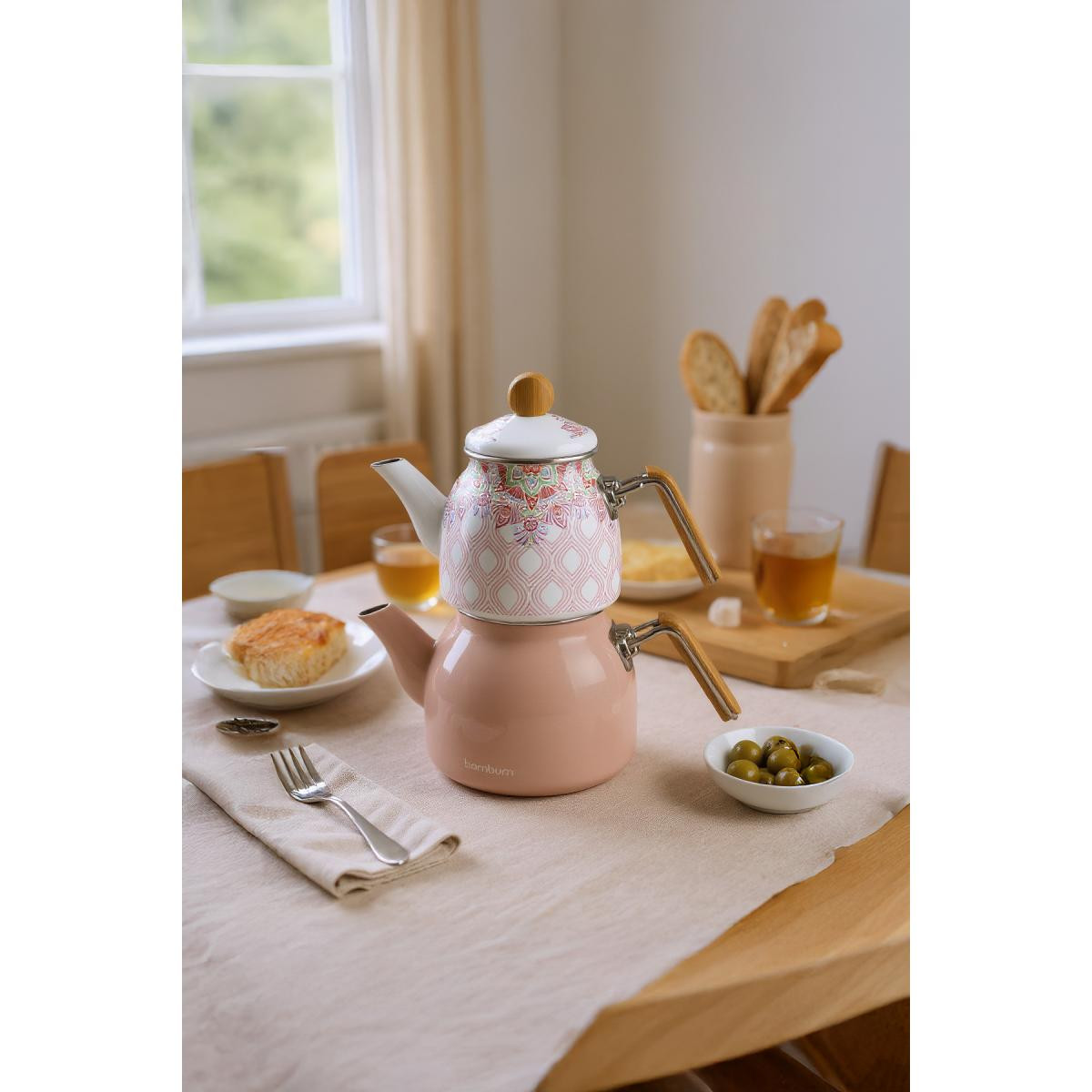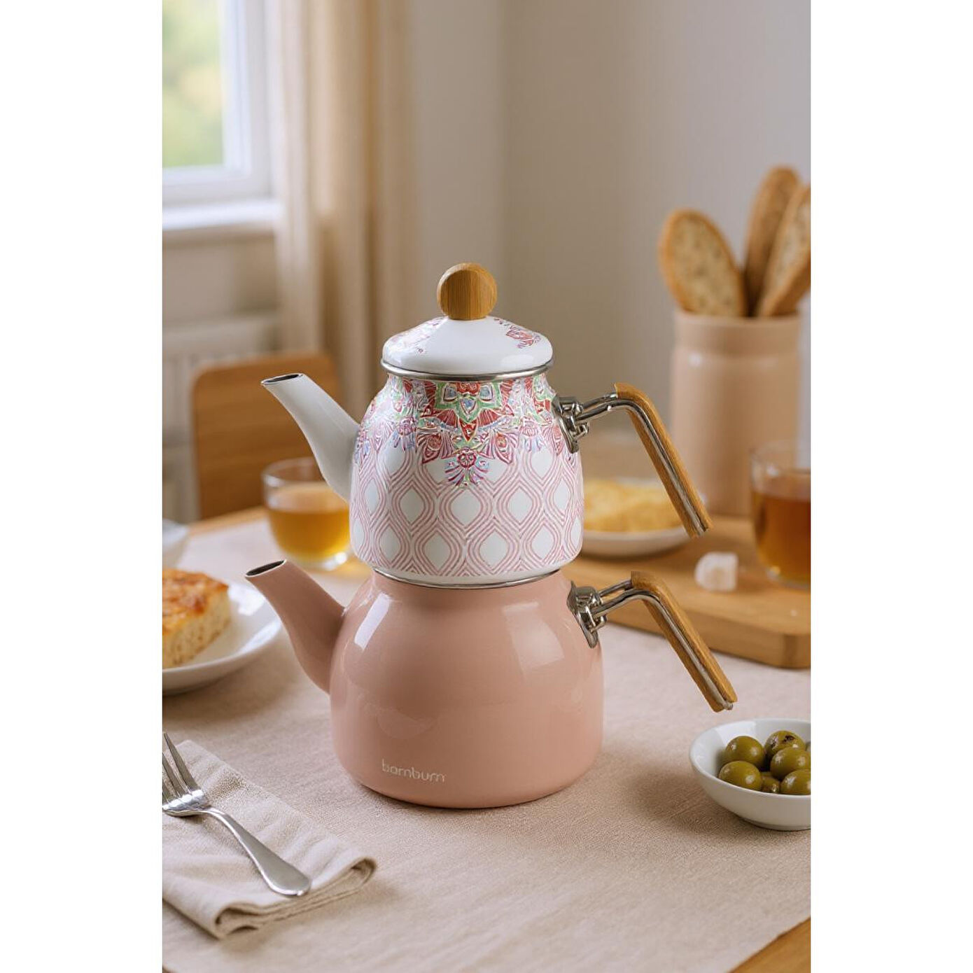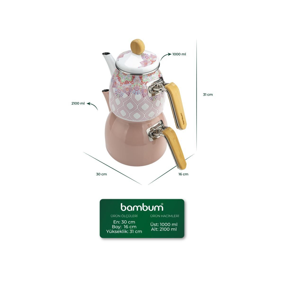 Bambum Unique Bambu Kulplu Emaye Çaydanlık Takımı Pembe