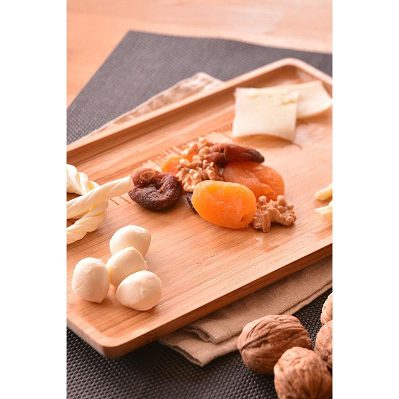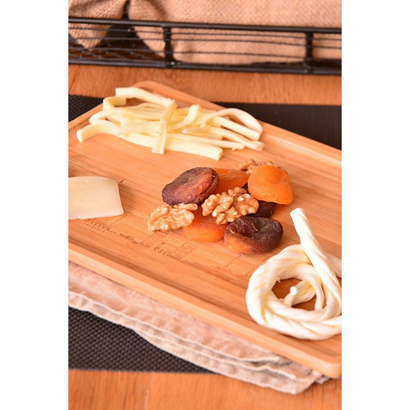 Doğal bambu malzemesi sayesinde hem dayanıklı hem de çevre dostu bir kullanım sunar; Bambu yapısı, ürünün hafif olmasını sağlarken aynı zamanda estetik bir görünüm kazandırır; Bambu tepsisi, sebzelerinizi ve meyvelerinizi doğal bir şekilde sergilemek için idealdir; Kolay temizlenebilir yüzeyi ile pratik kullanım imkanı sağlar ve hijyenik bir sunum alanı oluşturur; Bambu tepsisi, mutfakta veya yemek masanızda şık bir aksesuar olarak yerini alır ve dekoratif bir dokunuş katar;