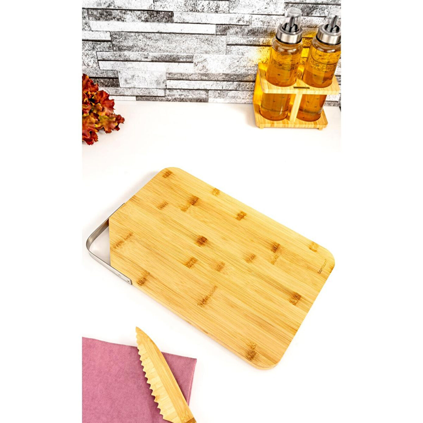 Bambum Zoe Çelik Kulplu Kesme Tahtası Dikdörtgen