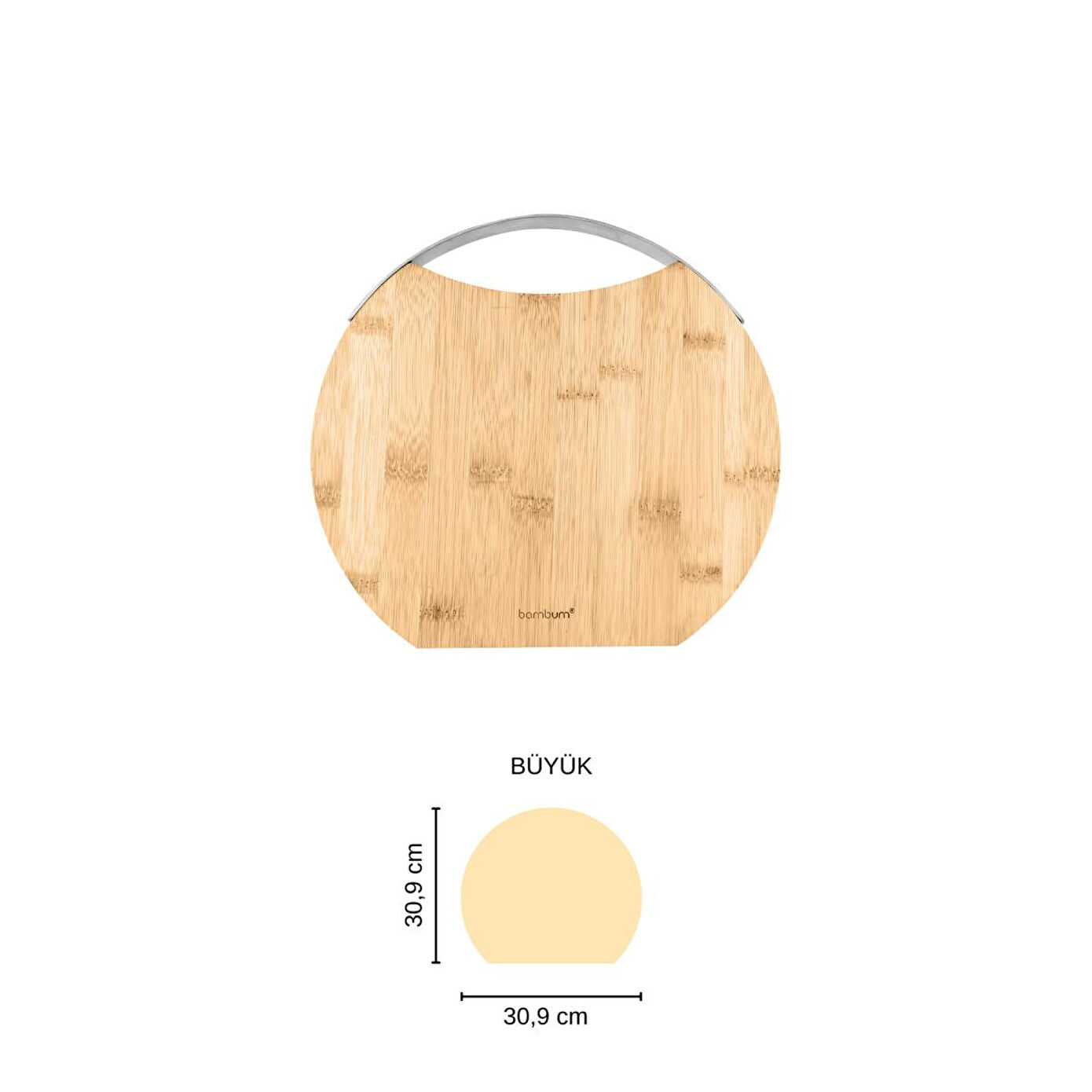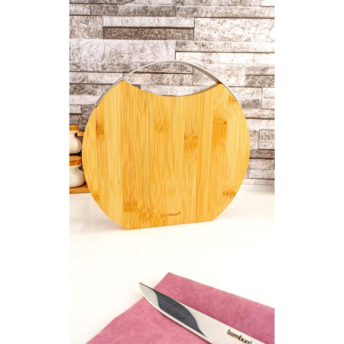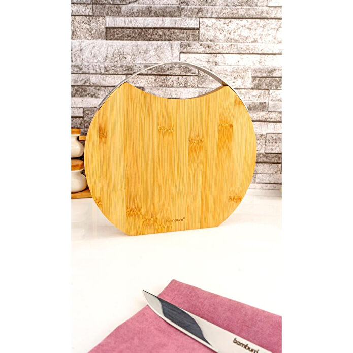 Bambum Zoe Çelik Kulplu Kesme Tahtası Yuvarlak