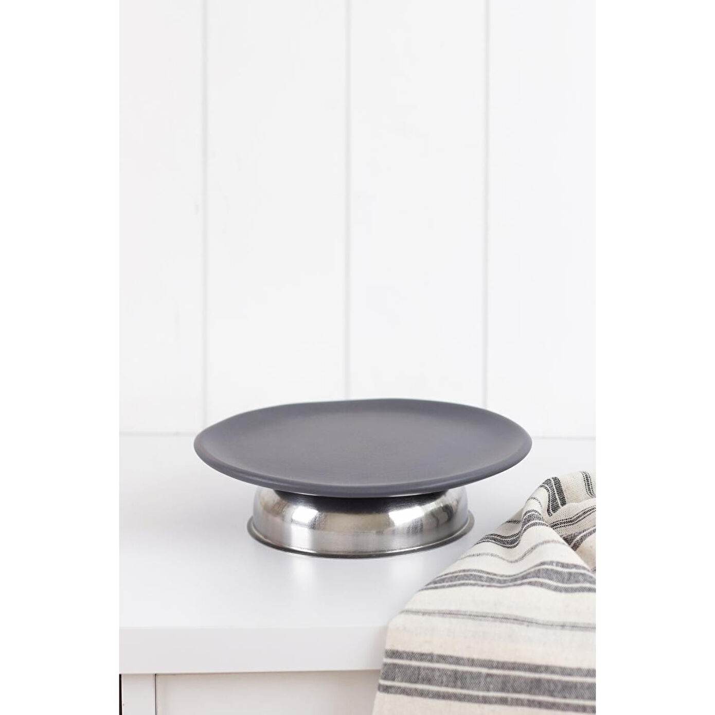 Beige & Stone Alçak Metal Ayaklı 23 Cm Seramik Kek Pasta Yuvarlak Servis/sunum Tabak Stand