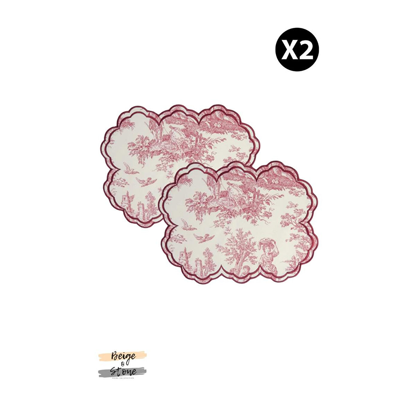 Beige & Stone Bordo Beyaz Vintage Nakış İşlemeli Amerikan Servis 2'li