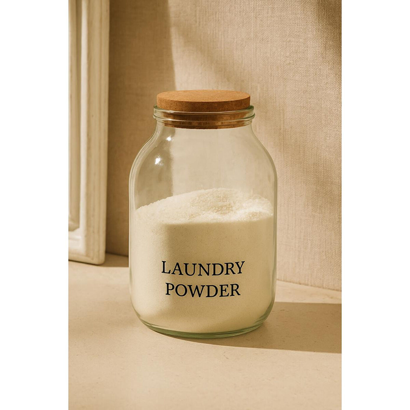Beige & Stone Cam Toz Deterjan Kavanozu Saklama Kabı