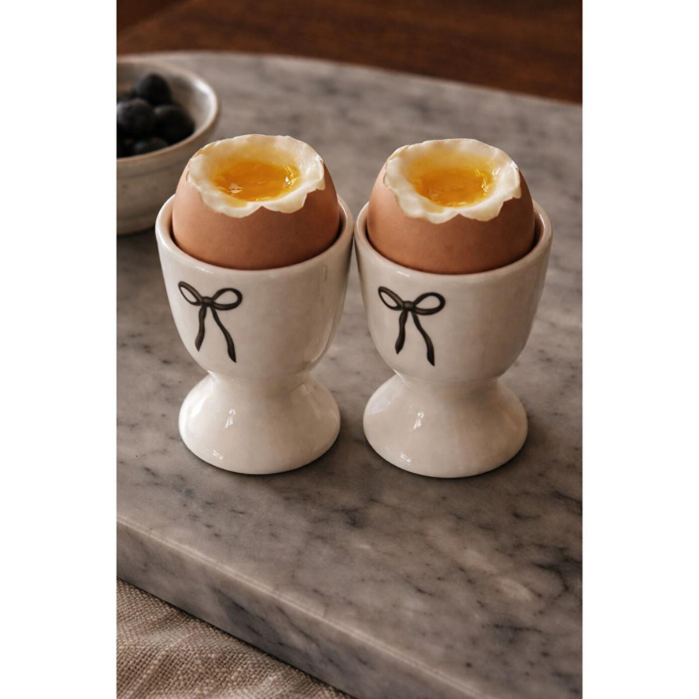 Beige & Stone Fiyonk Detaylı Seramik Yumurta Kadehi – 2’li Set | Krem
