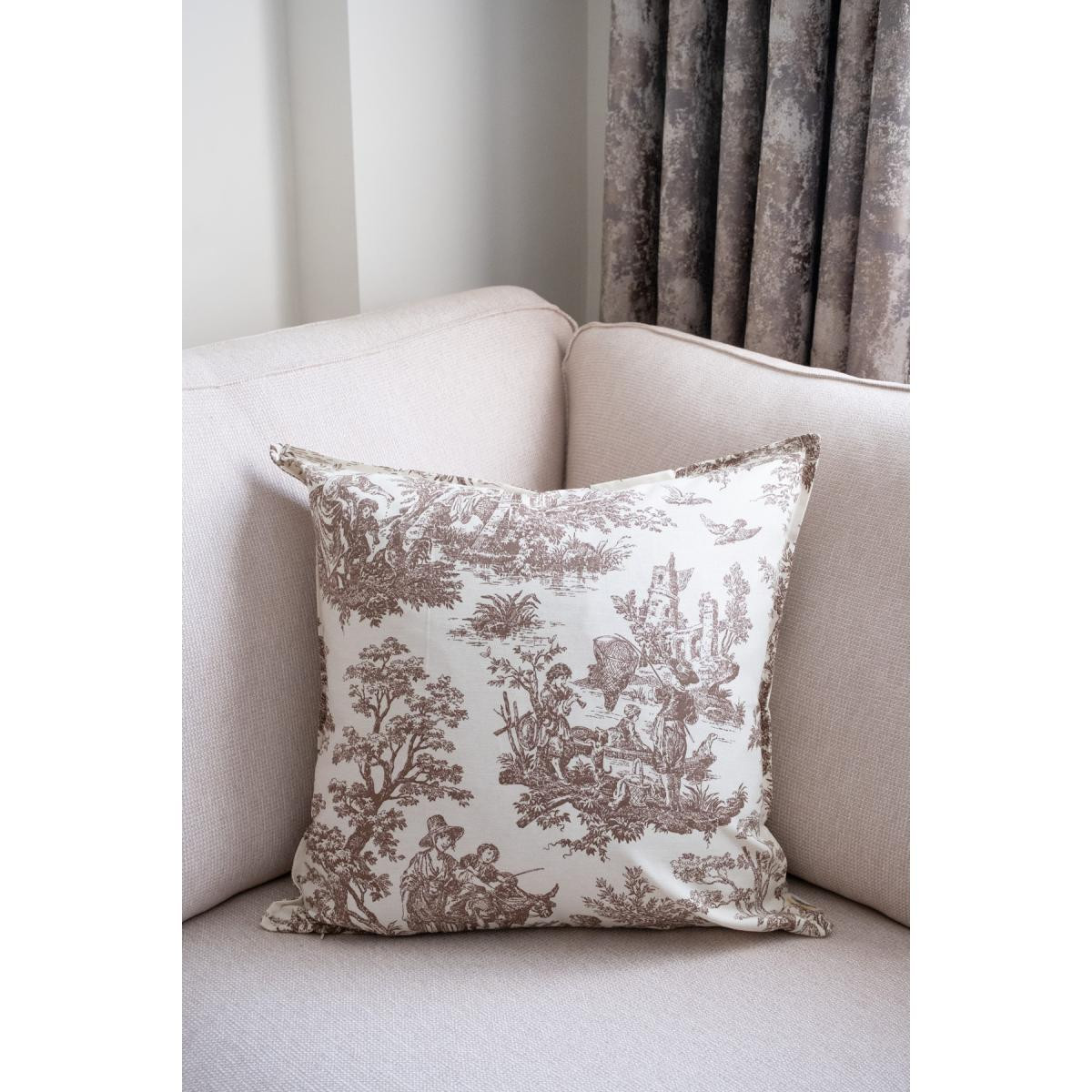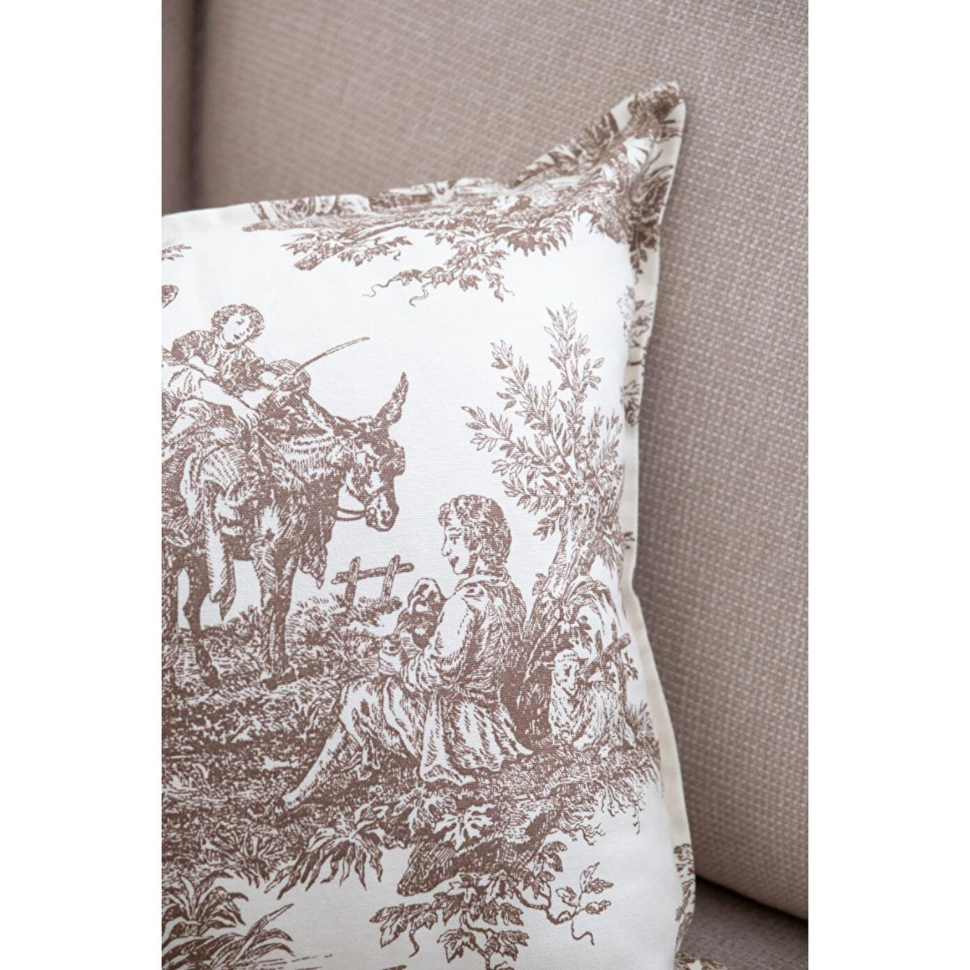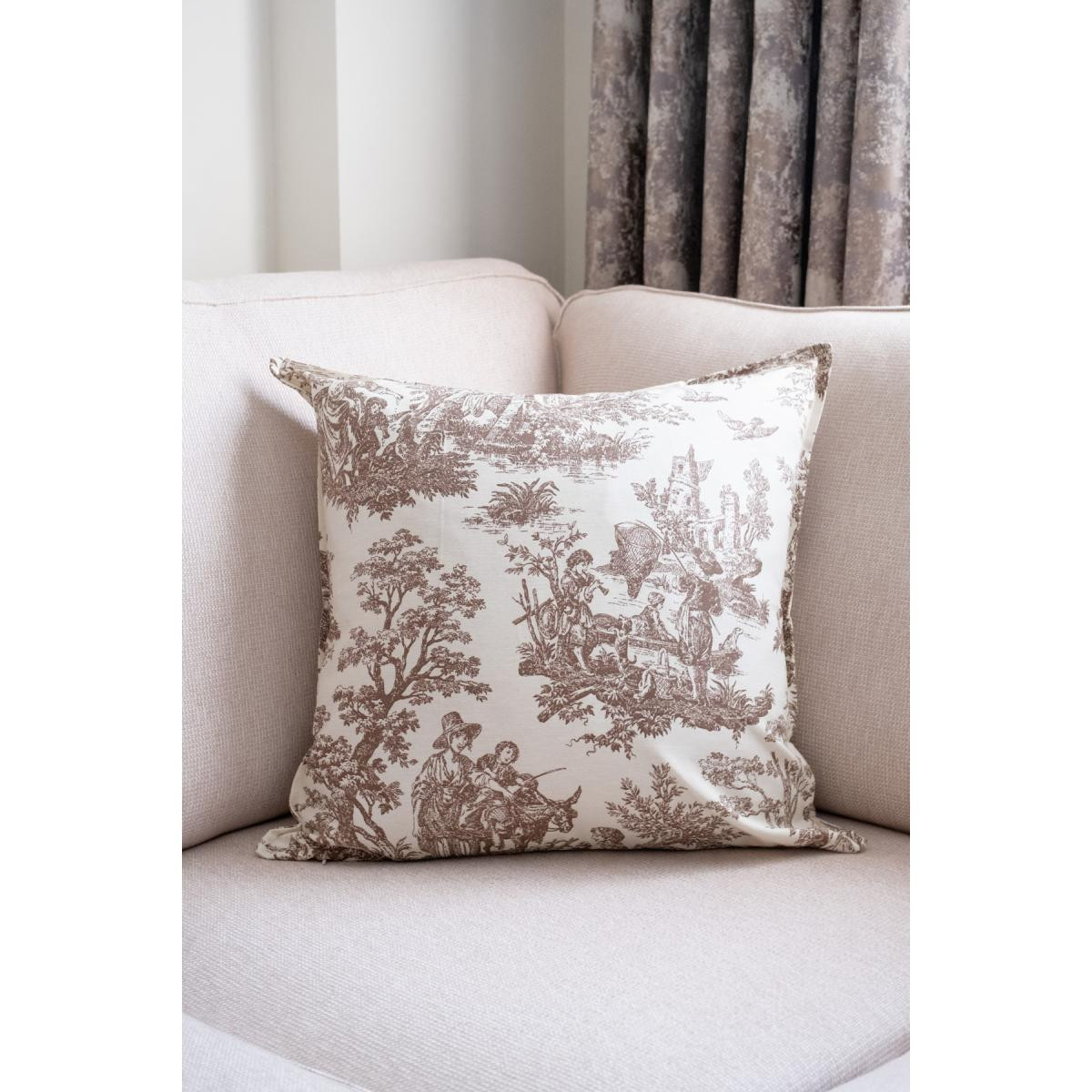 Beige & Stone Kahverengi Vintage Desenli 50x50 Dekoratif Yastık Kılıfı