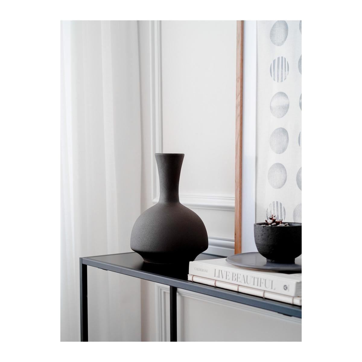 Ürünün yüzeyi kumlu özel sırlama metodu ile siyah renk ile tasarlanmıştır. ; Emery Vase vazolarının tamamı el işçiliği ile üretilmektedir. Kendine özgü boyut ve doku farklılıkları içerebilir.; Özgün mat dokusu ile iskandinav tarzını evinize taşıyın! ; %100 El yapımı seramik dekoratif obje. ; Ürünümüz doğal seramiktir. Bu nedenle seramikten gelen kendine özgün farklılıklar içerebilir. Ürünün yüzeyi nemli bez ile temizlenebilir.; Ürün boyutları: 20x20x29 cm (Ölçüler 1 cm kadar farklılık gösterebilir);