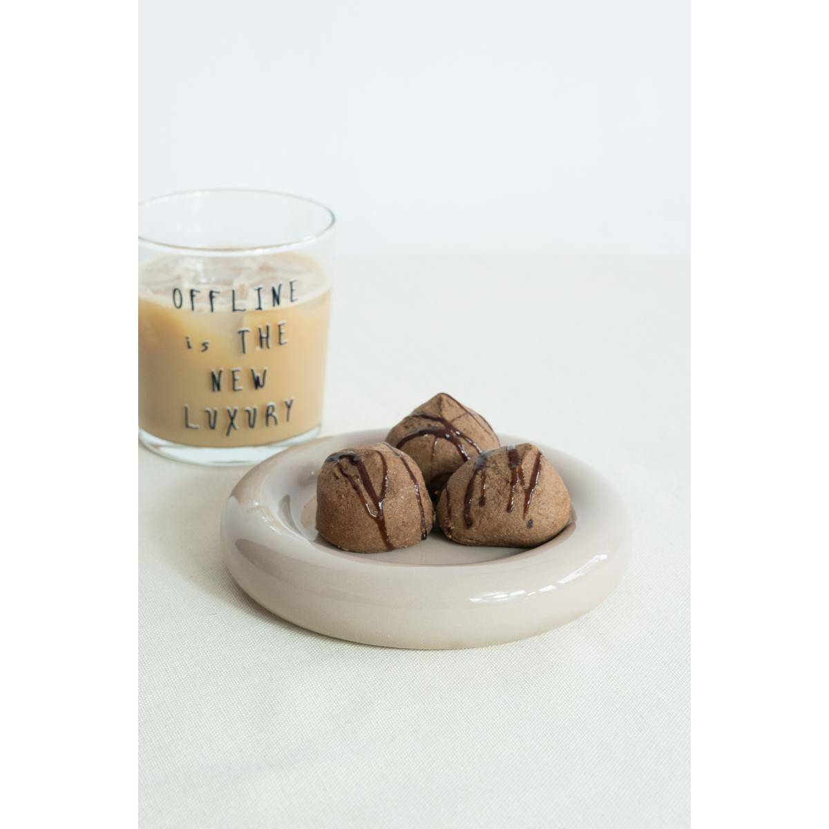 Beige & Stone Seramik Küçük Boy Parlak Bej Donut Tatlı Tabağı