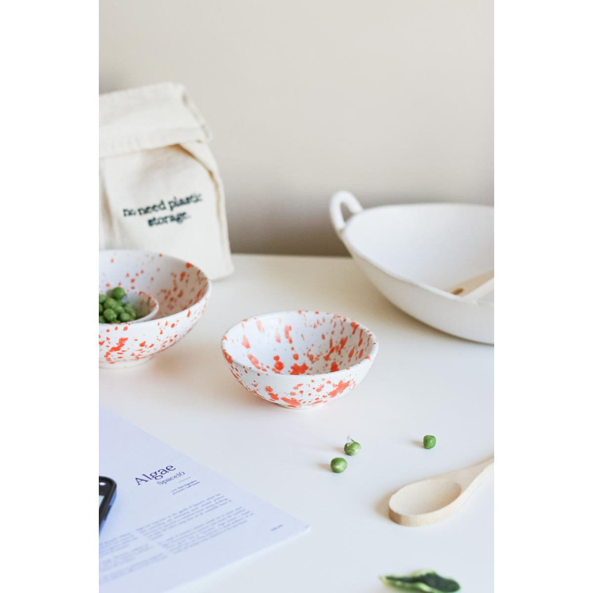 Beige & Stone Seramik Turuncu Benekli Çerez Kahvaltılık Orta Sunum Kase 150 Ml