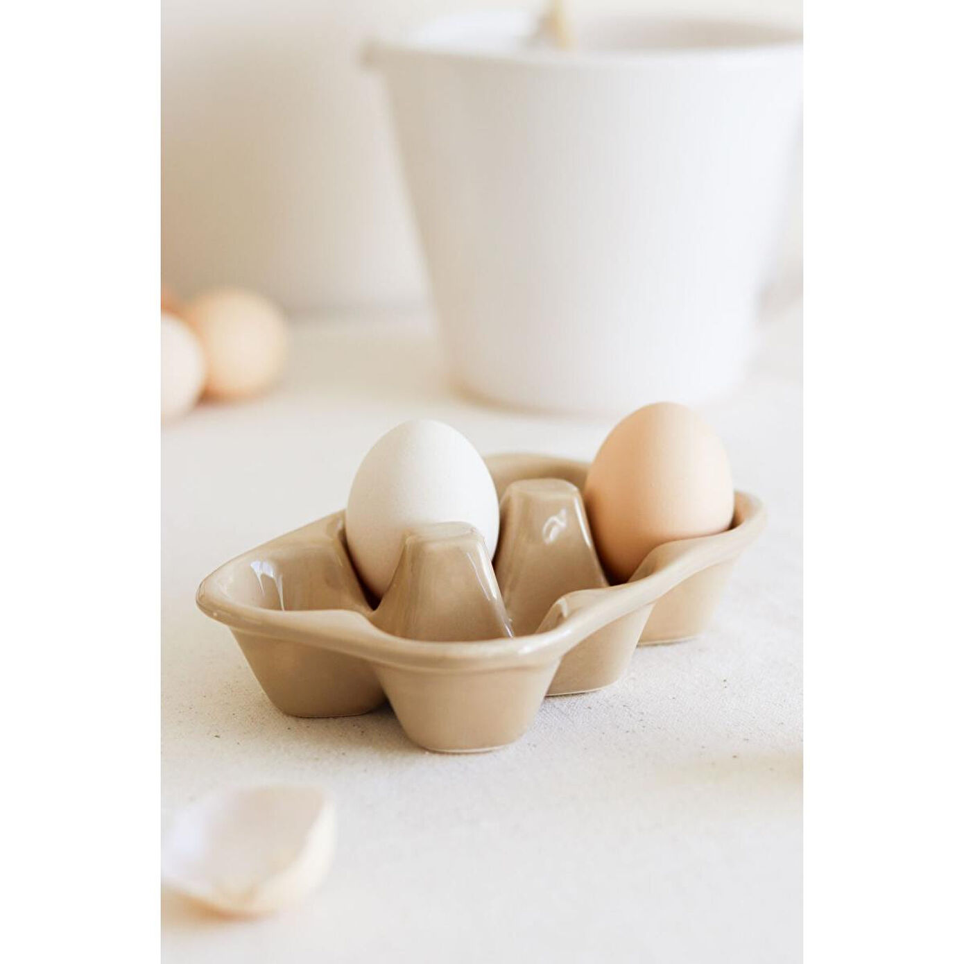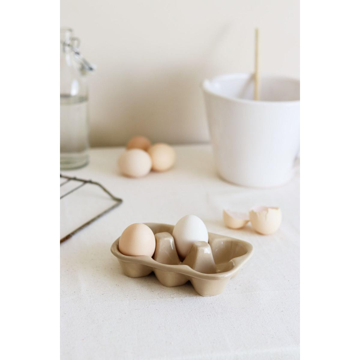 Beige & Stone Seramik Yumurtalık Saklama Servis Kabı