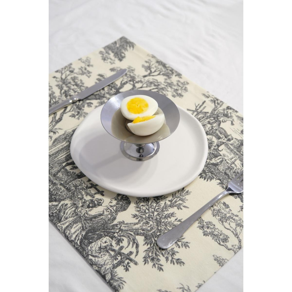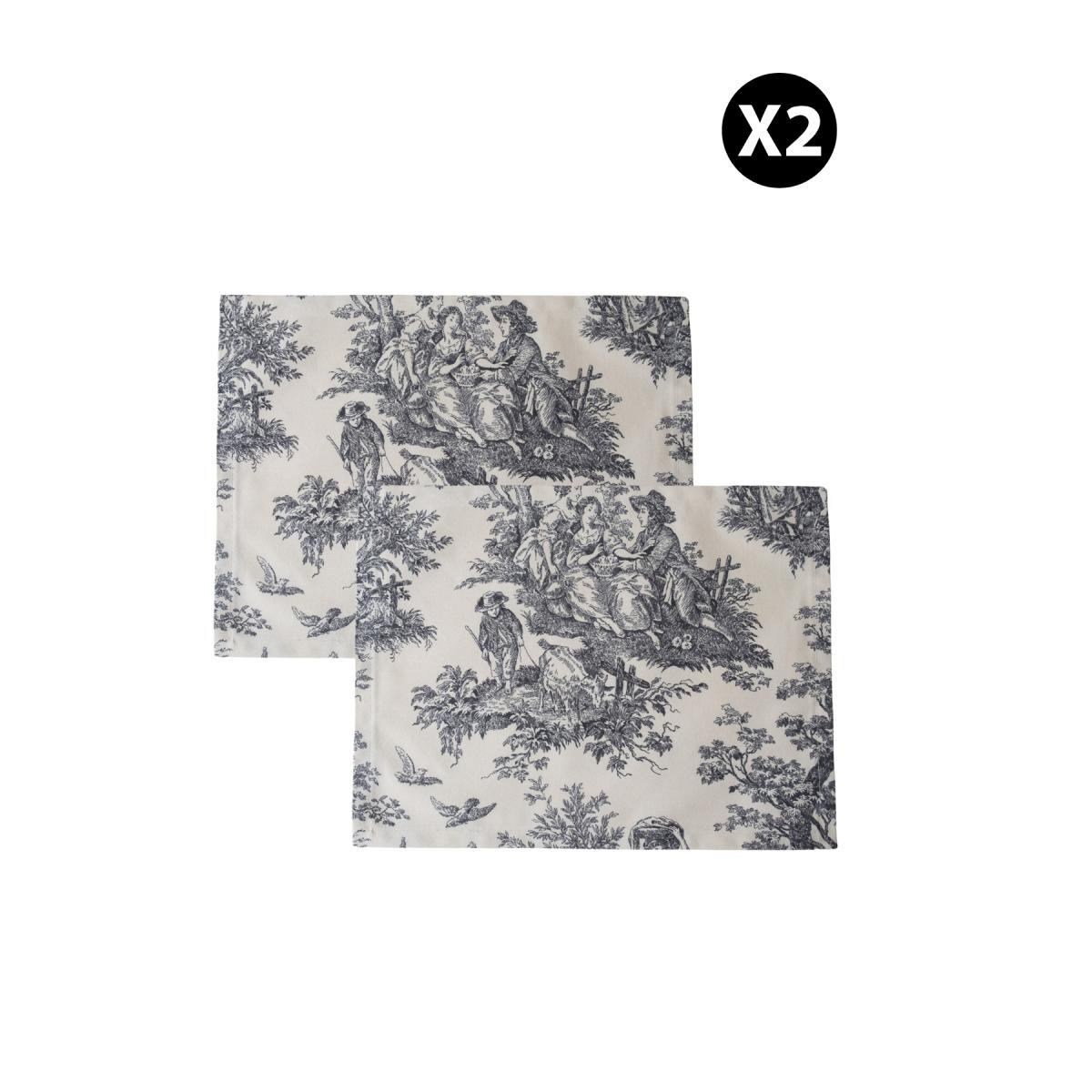 Beige & Stone Siyah Pastoral Desenli Dikdörtgen Amerikan Servis 2'li