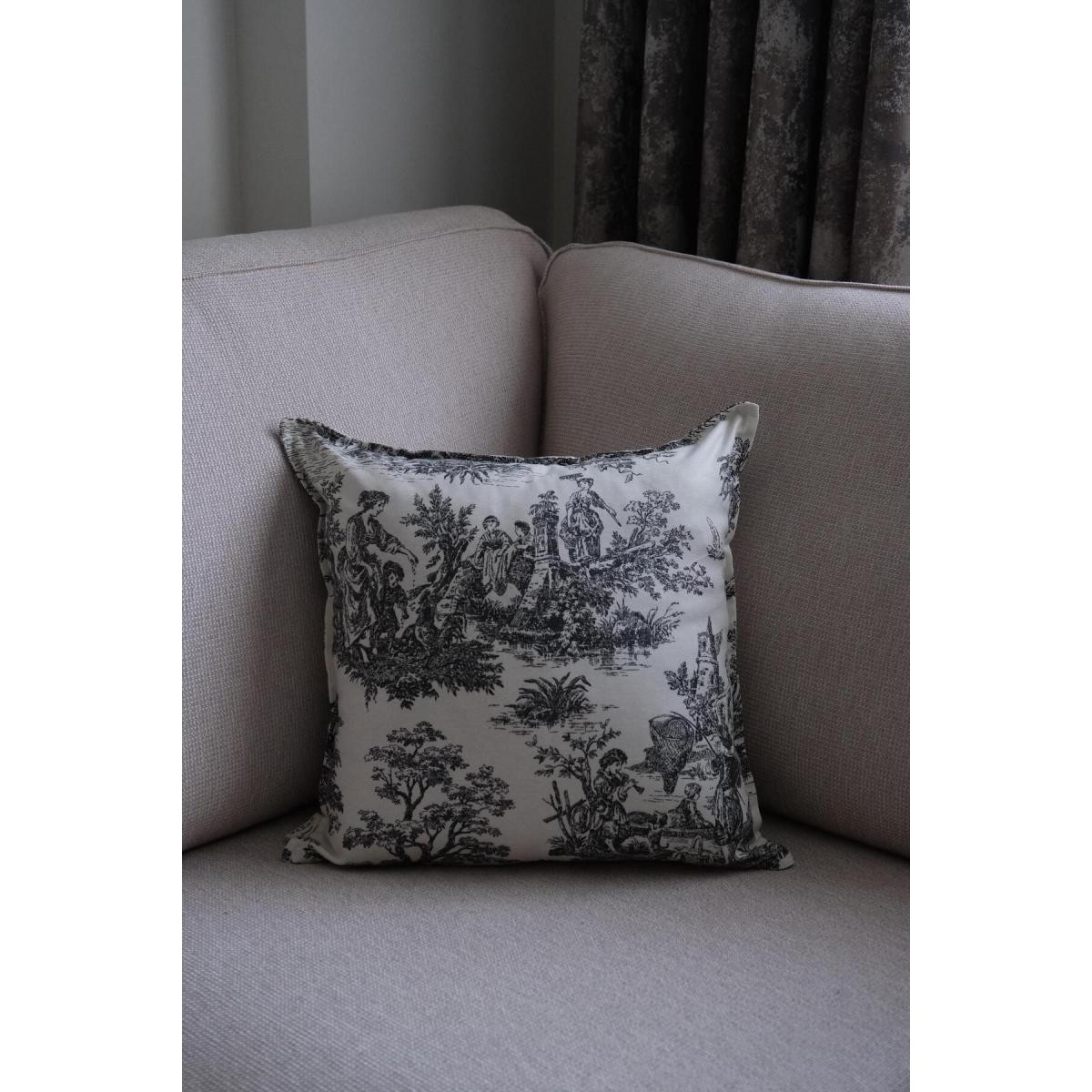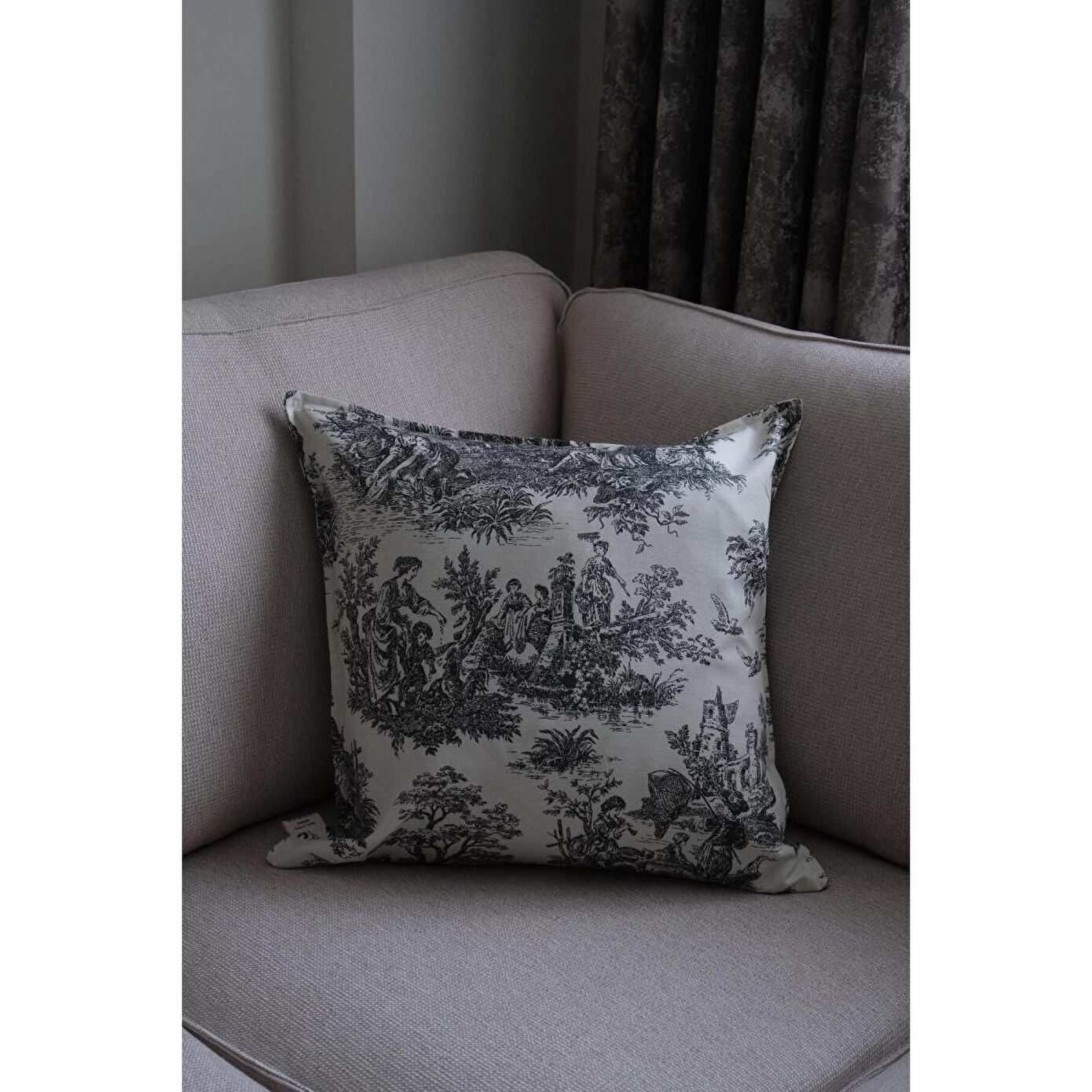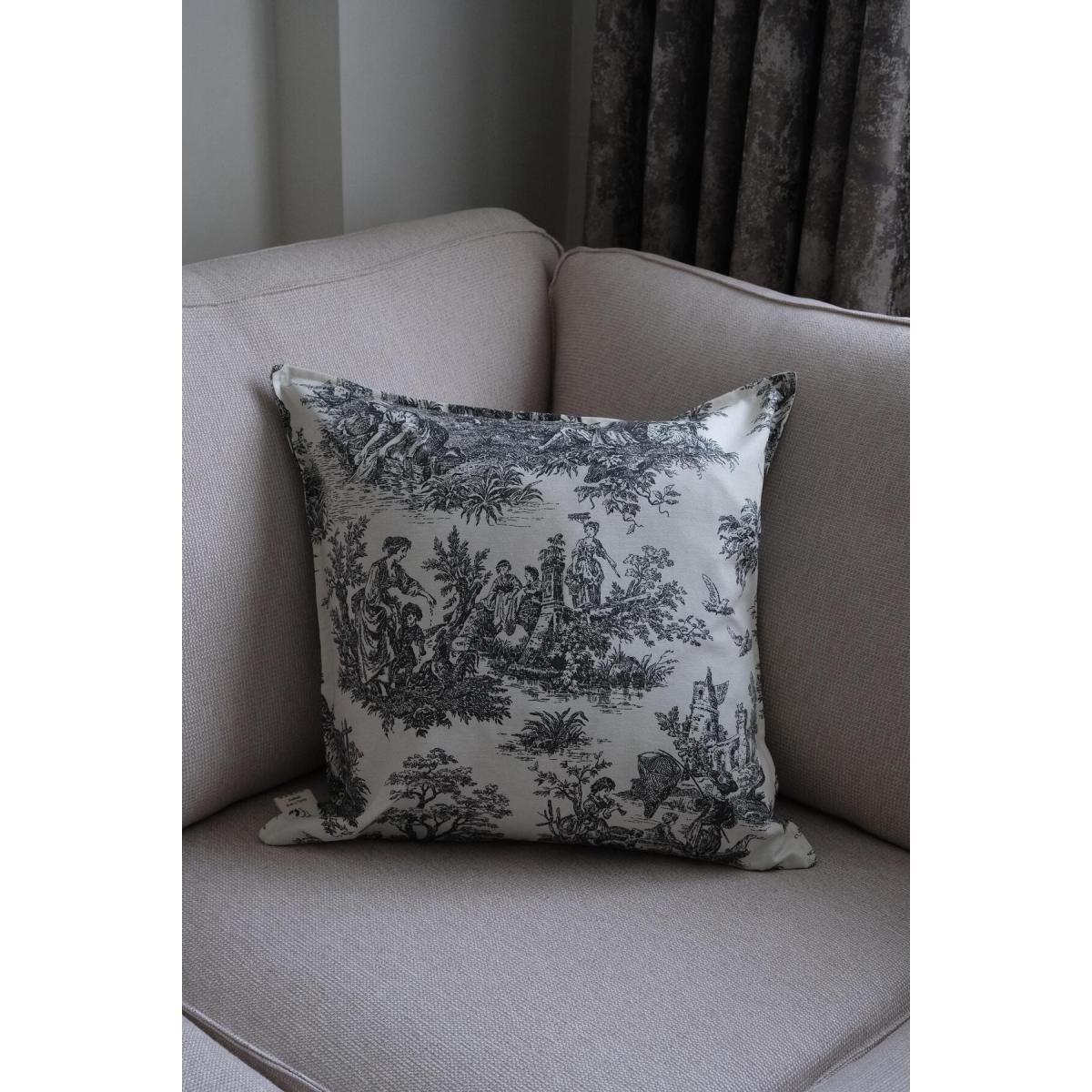 Beige & Stone Siyah Vintage Desenli 45x45 Dekoratif Yastık Kılıfı
