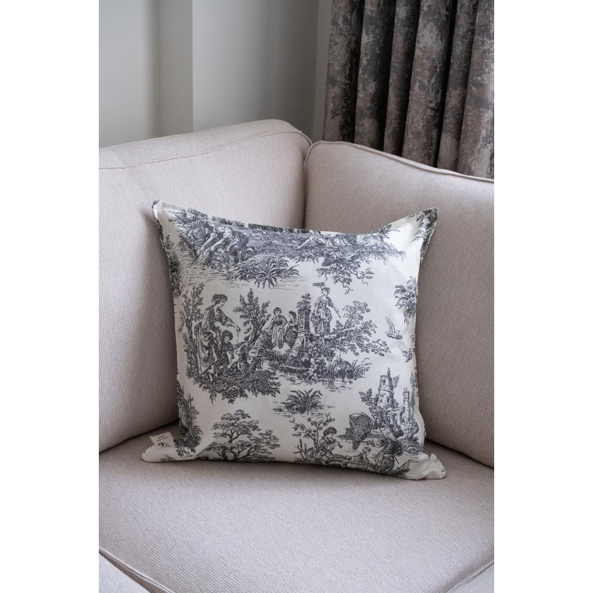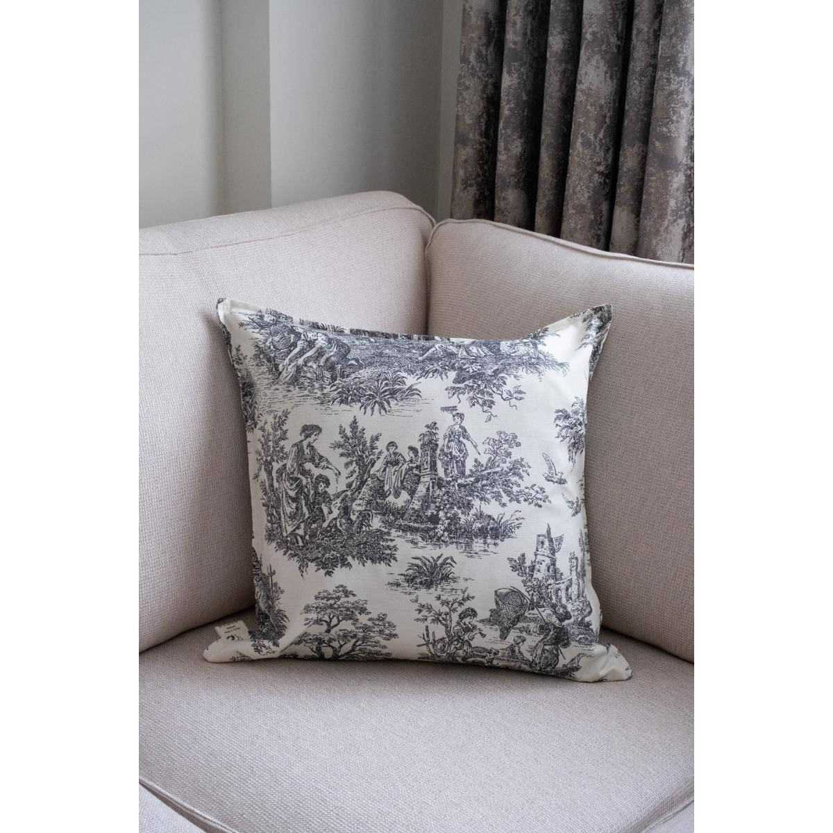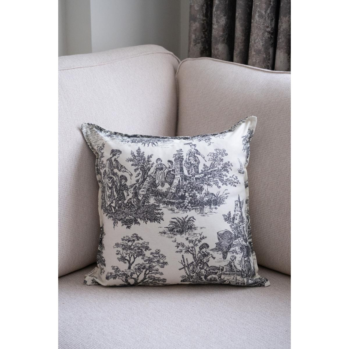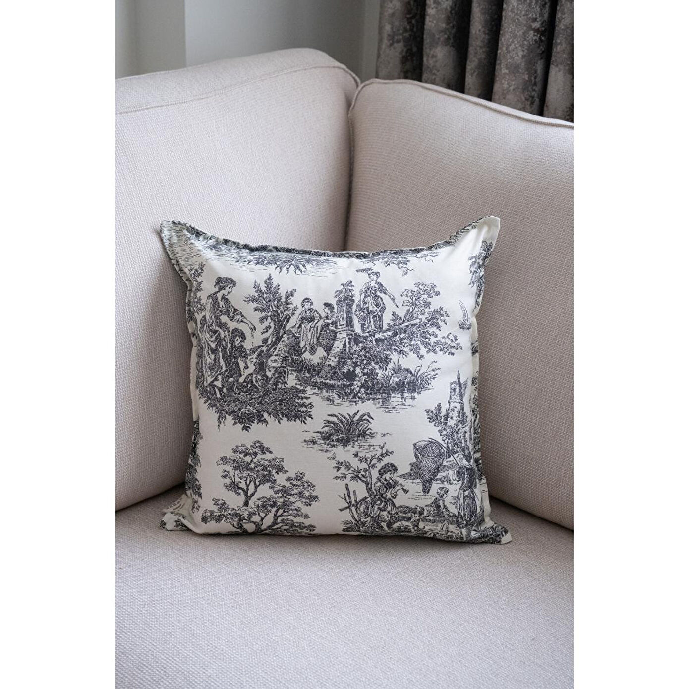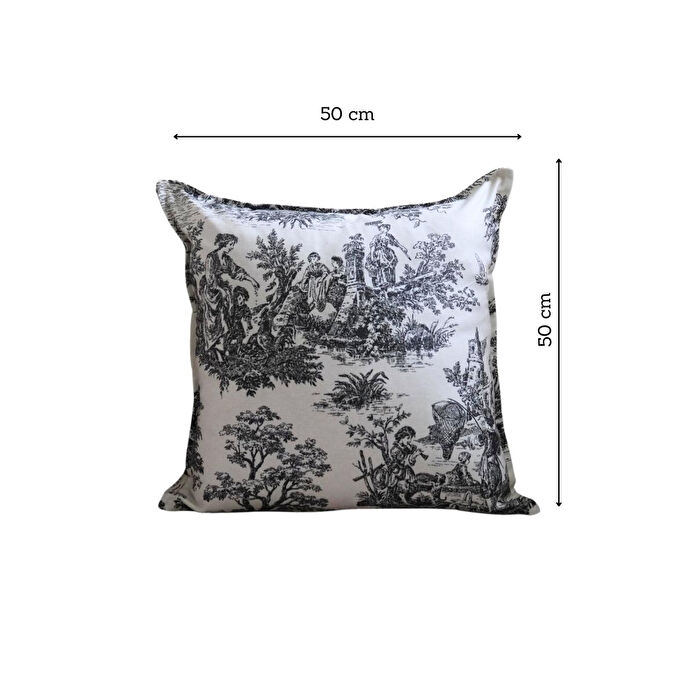 Beige & Stone Siyah Vintage Desenli 50x50 Dekoratif Yastık Kılıfı