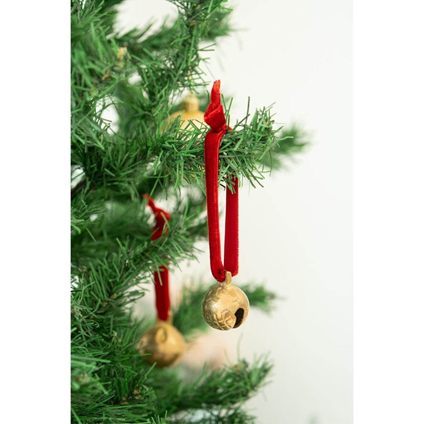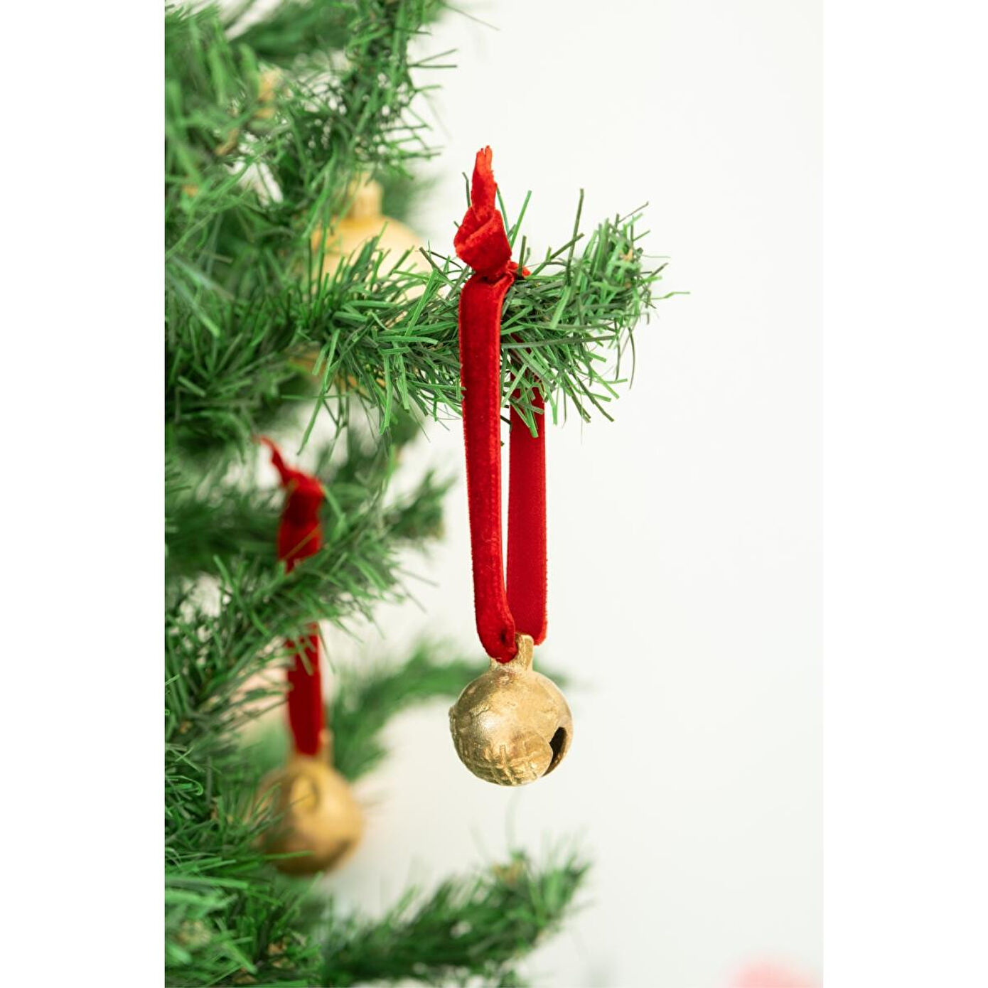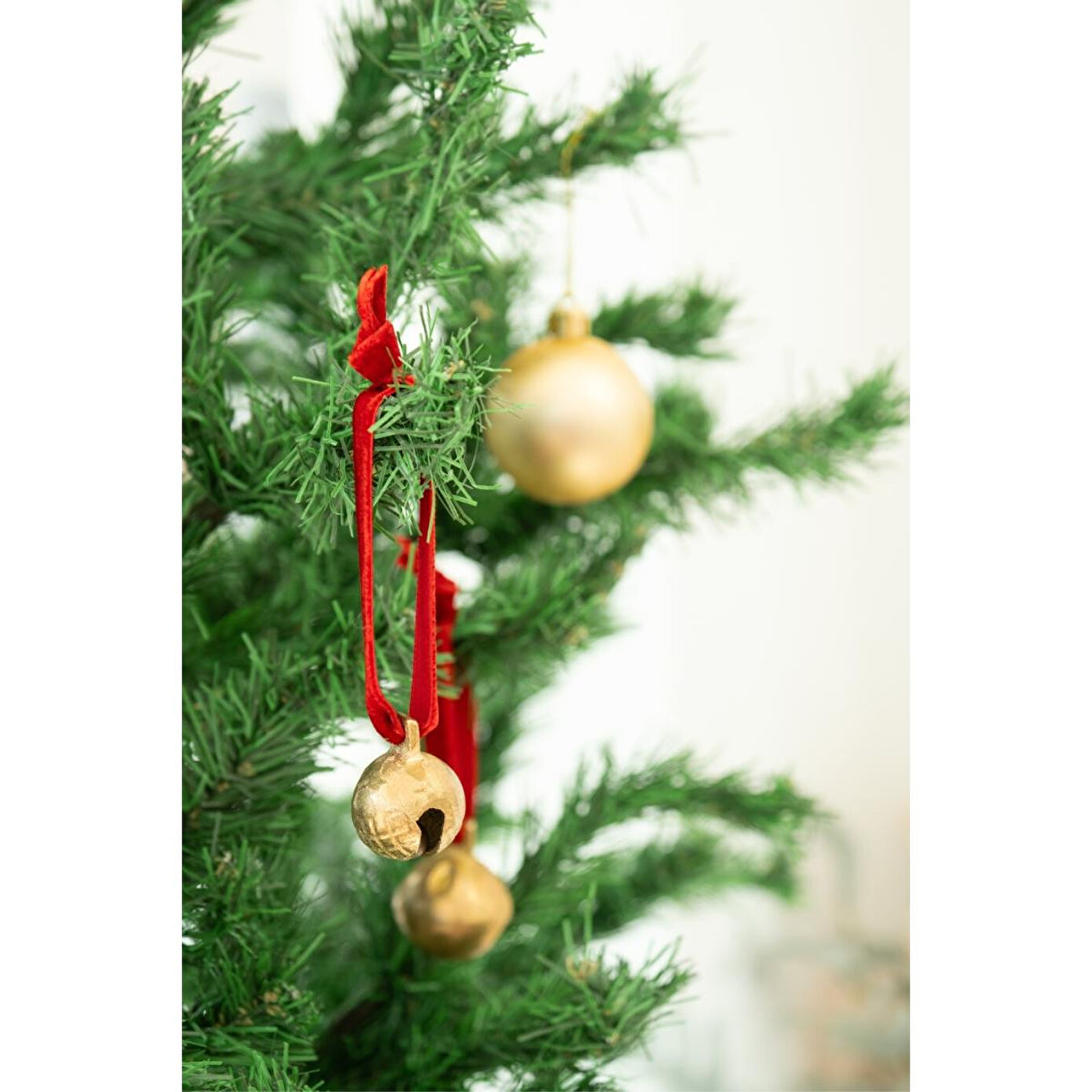 Beige & Stone X Den.interiors Yılbaşı Ağaç Süsü Kırmızı Küçük Gold Top Çan