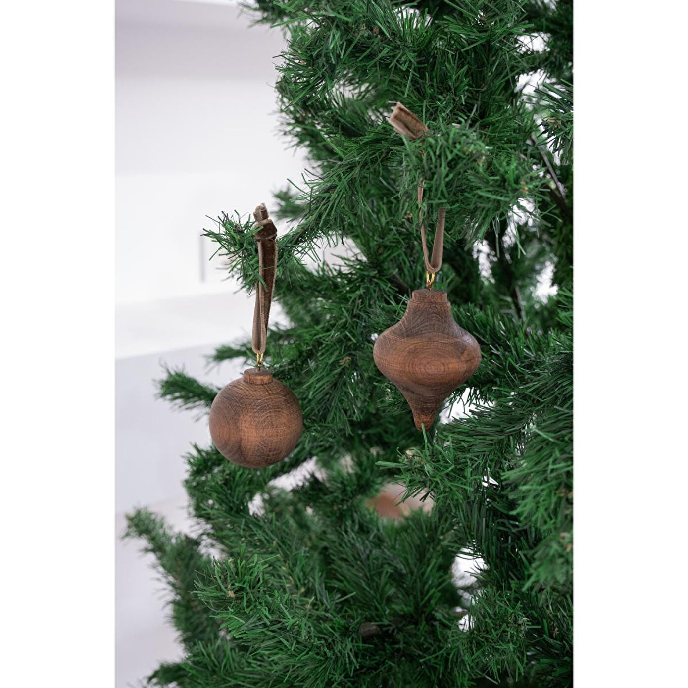 Beige & Stone X Den.ınteriors Yılbaşı Ahşap 2 Li Set Top Topaç Noel Ağaç Süsü
