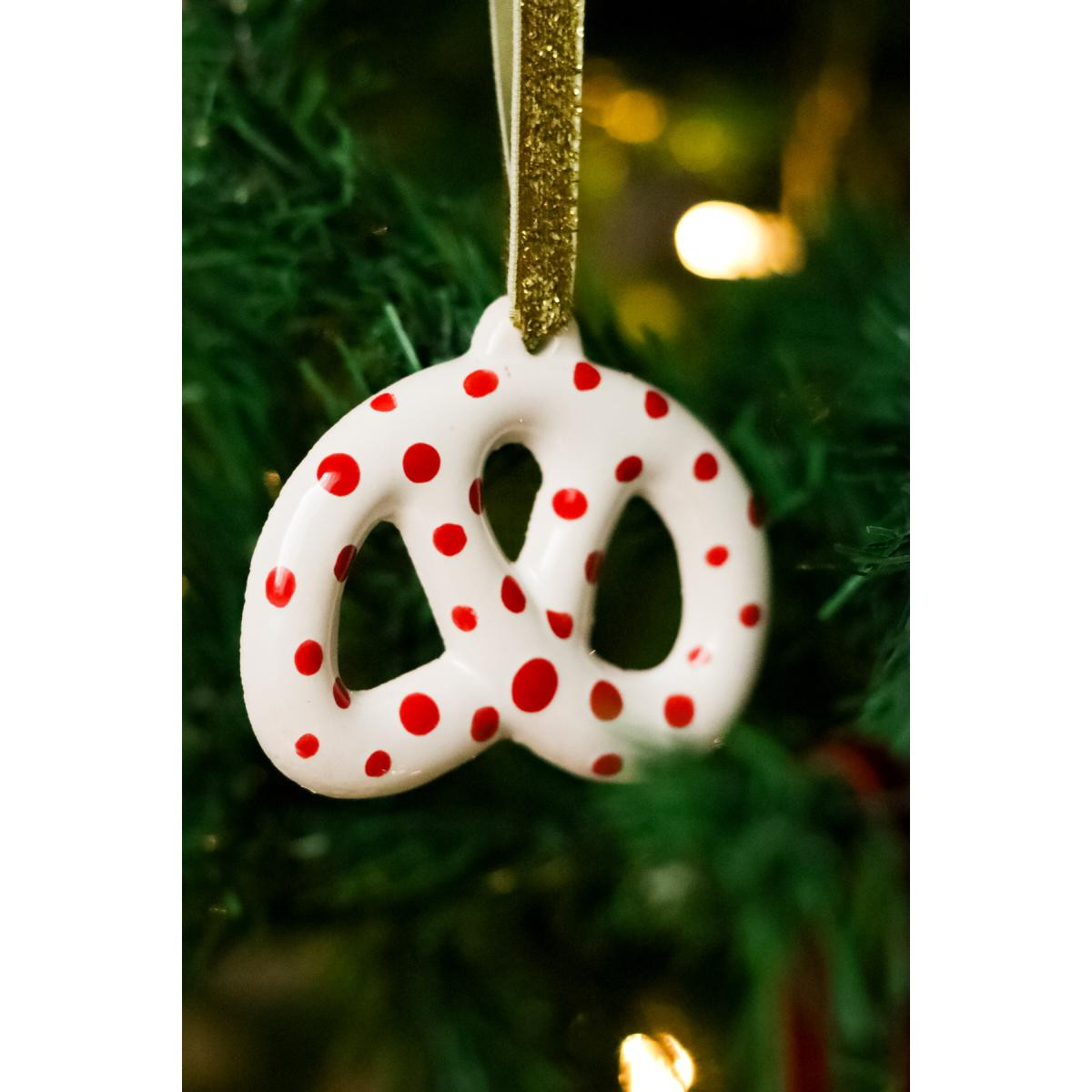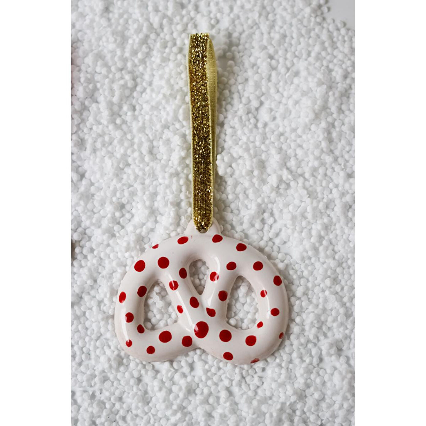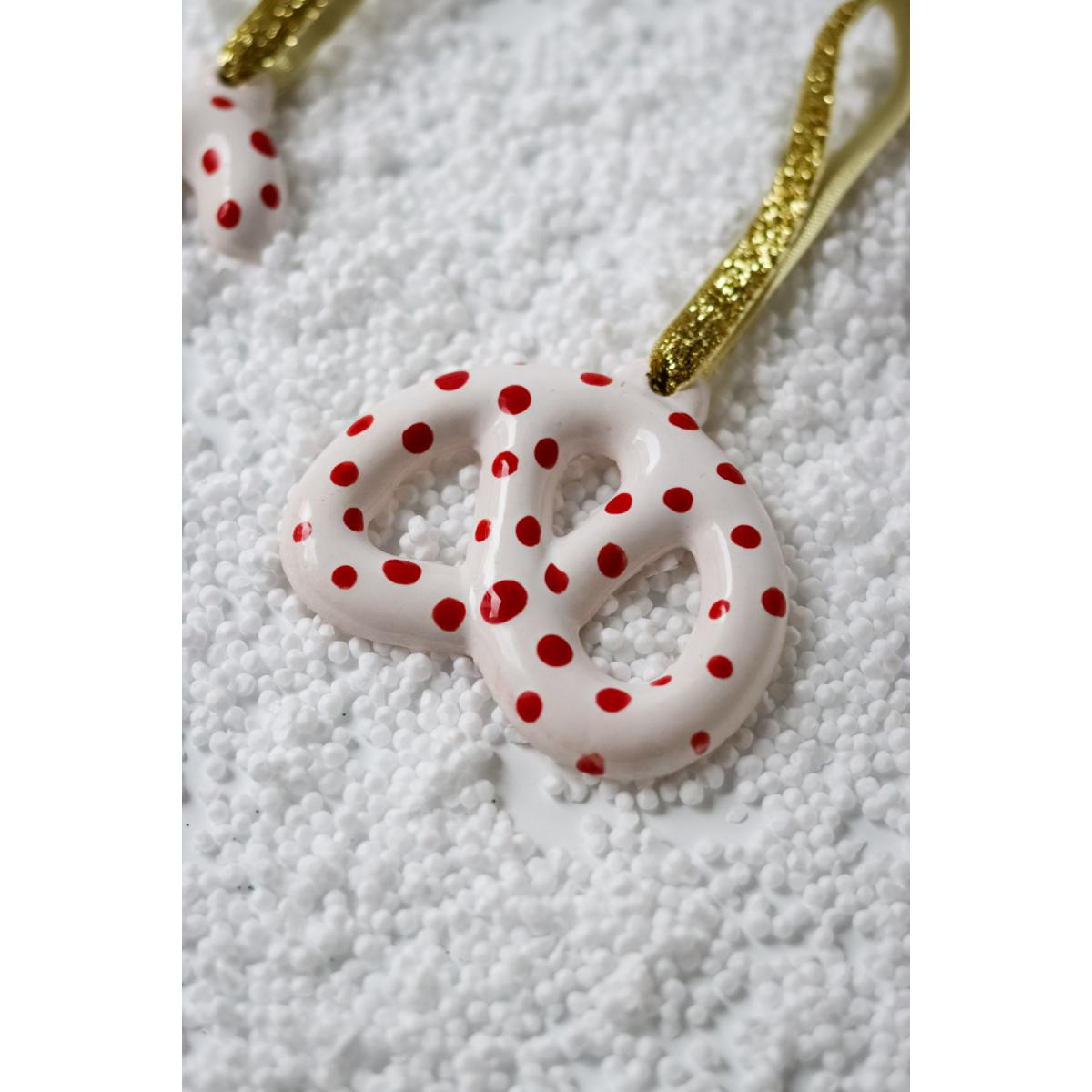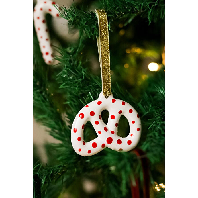 Beige & Stone Yılbaşı Ağaç Süsü Benekli Seramik Pretzel Simit Çam Ağacı Süsü