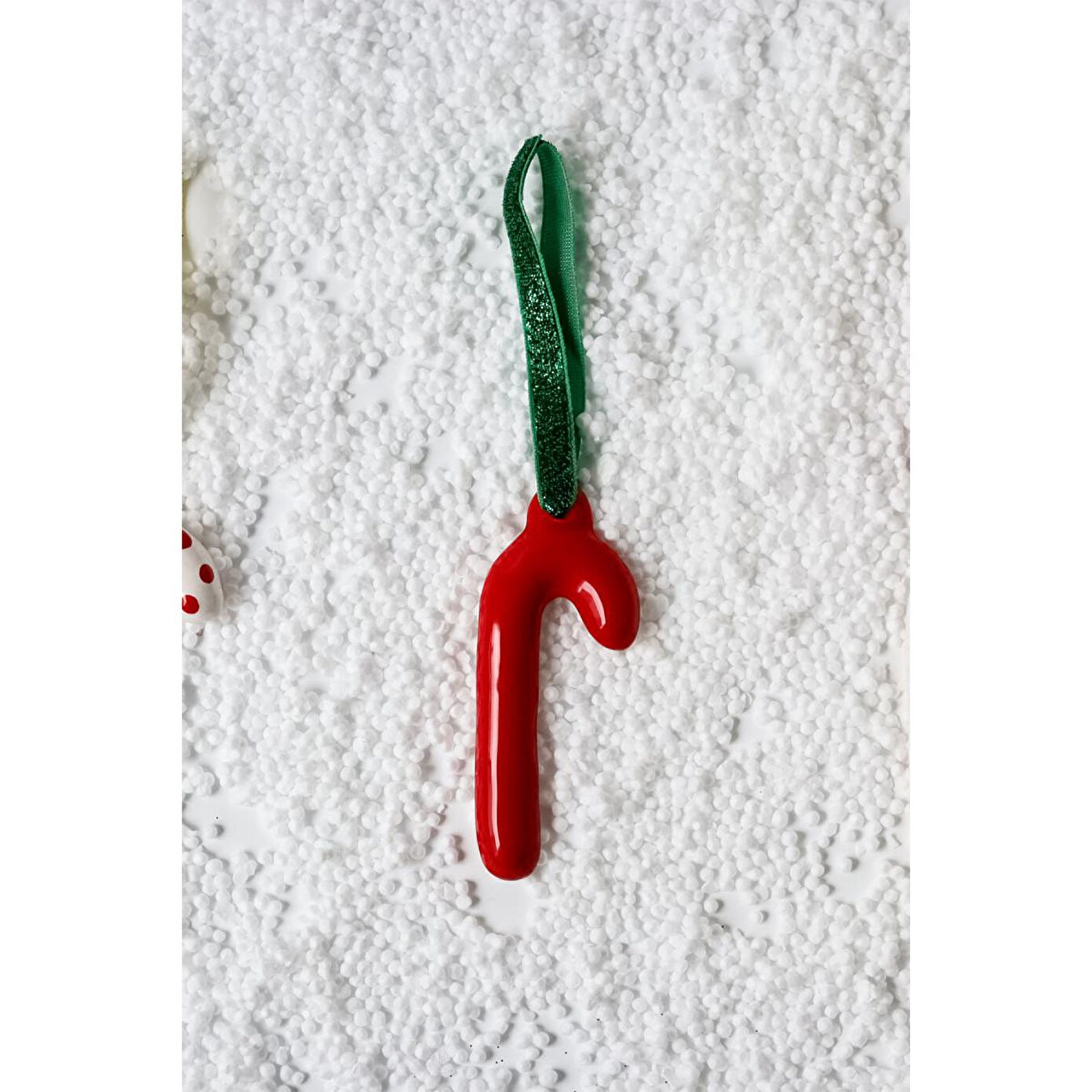 Yılbaşı Ağaç Süsü Kırmızı Seramik Baston Çam Ağacı Süsü