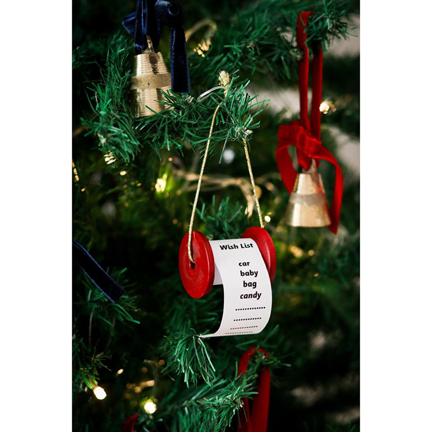 Beige & Stone Yılbaşı Ağacı Süsü Kırmızı Dilek Hediye Liste Makarası