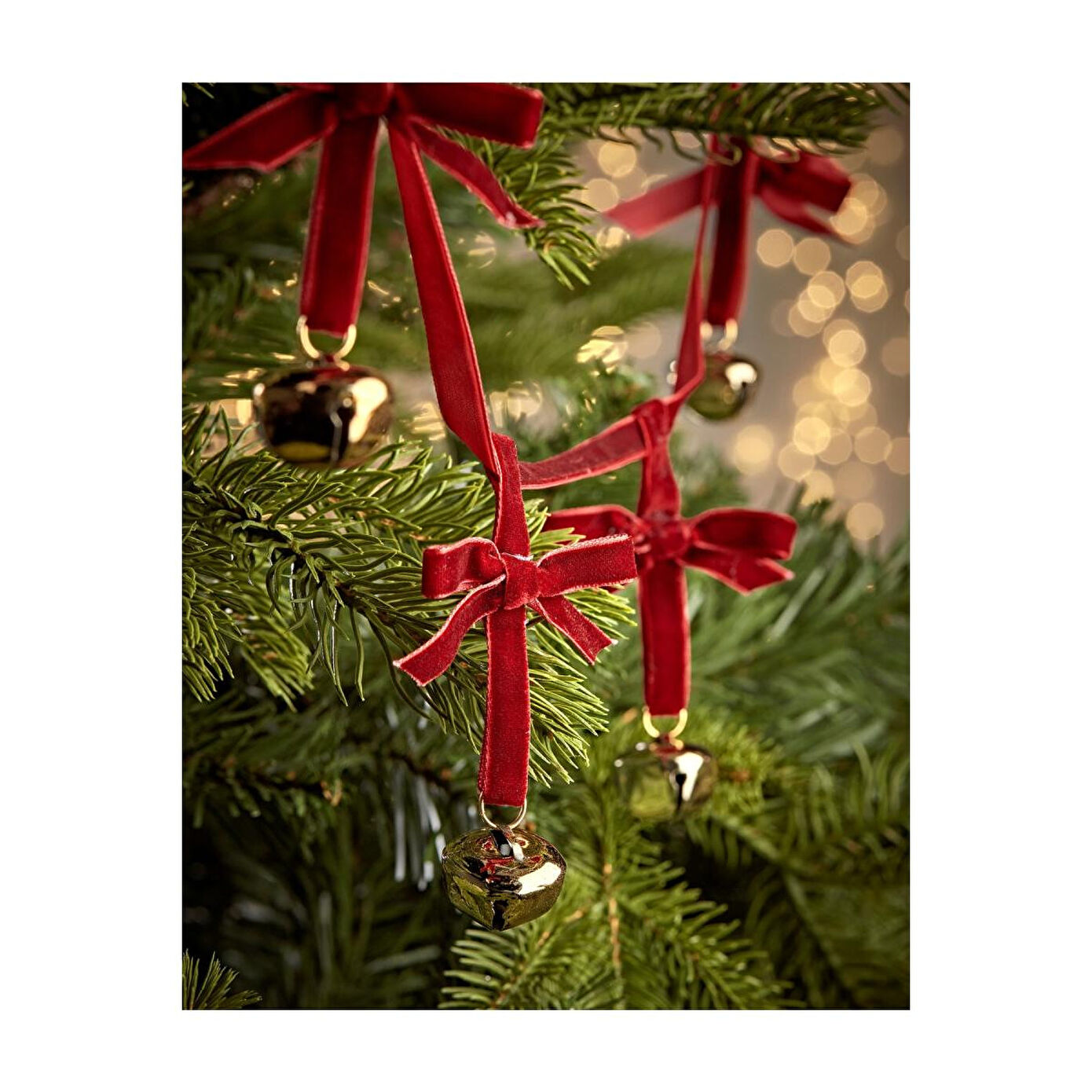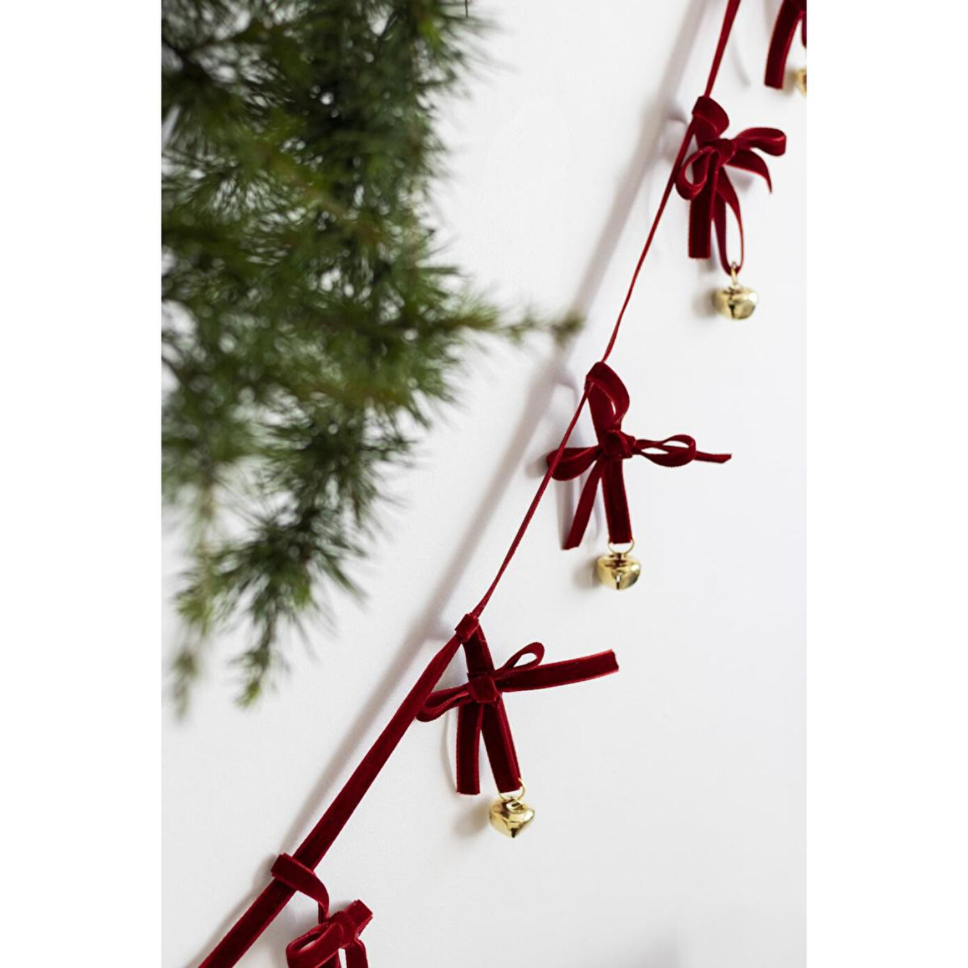 Beige & Stone yılbaşı koleksiyonundaki "Kadife Çan Kurdele Zinciri" ile ağacınızı, merdiveninizi veya şöminenizi gerçek bir geleneksel noel tarzında süsleyin. ; Her biri on kırmızı fiyonklu ve altın çanları mevcut. ; Miktar: 1 Boyutlar: Toplam: Y 10 x u 140cm Altın çanlar: Çap 2cm Kadife kurdele ve demir çanlardan yapılmıştır. ; Her zincir 10 yay ve çandan oluşur.;