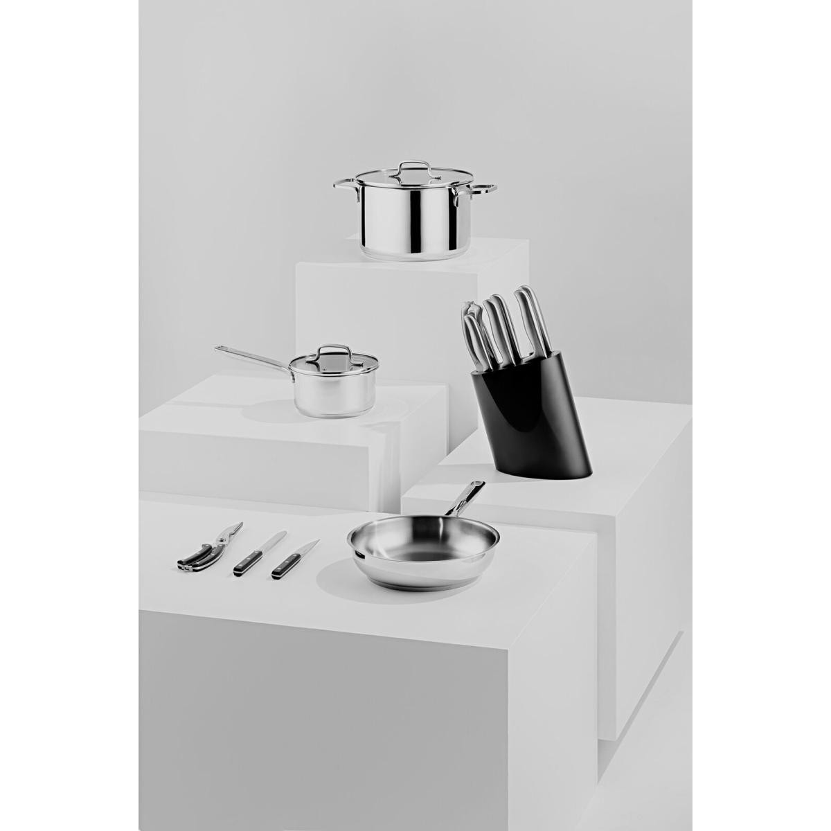 Ürün Açıklaması: BergHOFF Frame 8 Parçalı Bloklu Set, soyma bıçağından kümes hayvanları makasına kadar her bıçak türünü barındırır. Şık siyah blok içerisinde güvenle saklanan dövme 18/10 paslanmaz çelik bıçaklar, elle yıkanarak uzun süre keskin kalır. Ergonomik, içi boş sap tasarımı elinize mükemmel uyum sağlar ve optimum kontrol kazandırır. Öne çıkan özellikler: • 18/10 paslanmaz çelik bıçak gövdeleri • İçi boş, üç perçinli ergonomik saplar • Şık siyah bıçak bloğu ile düzenli saklama • Çok yönlü 7 bıçak + makas seti • Elle yıkanması önerilir İçerik: • 1× Soyma Bıçağı – 9 cm • 1× Çok Amaçlı Bıçak – 12,5 cm • 1× Oyma Bıçağı – 20 cm • 1× Ekmek Bıçağı – 20 cm • 1× Şef Bıçağı – 20 cm • 1× Santoku Bıçağı – 17,5 cm • 1× Kümes Hayvanları Makası – 25 cm • 1× Bıçak Bloğu Teknik Özellikler: • Malzeme: 18/10 paslanmaz çelik (bıçak), içi boş 18/10 sap • Blok Boyutları: 22,4x18,3x11,0 cm • Set Ağırlığı: 3,1 kg • Üretici Garantisi: 2 yıl