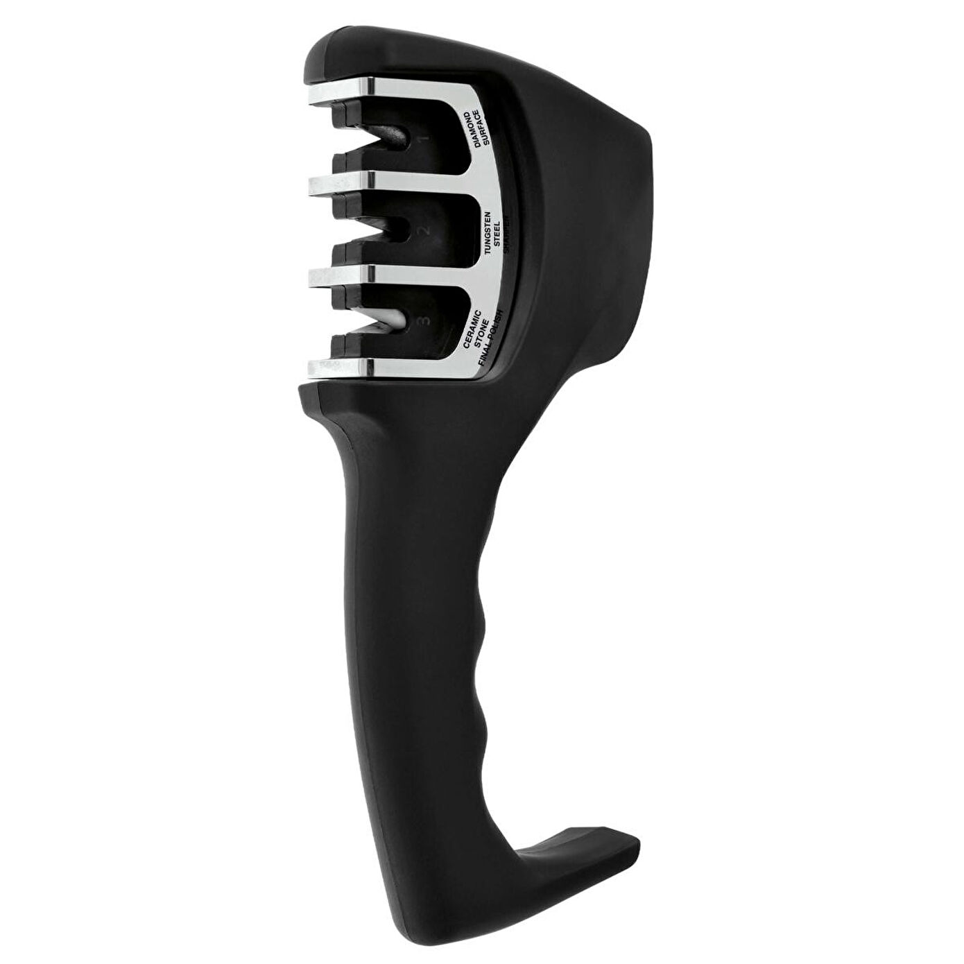 Ürün Açıklaması: Mutfak bıçaklarınızın keskinliğini 3 adımda geri kazandıran bu pratik bileyici, hem profesyonel şefler hem de ev kullanıcıları için ideal. Tungsten çelik ve seramik yüzeyleri, elmas bileme aşamasından sonra pürüzsüz bir kesim sunar. Kaymaz tabanlı ergonomik sapı, tam kontrol ve ekstra denge sağlar. Öne çıkan özellikler: • 3 aşamalı bileme sistemi (elmas, tungsten, seramik) • Ergonomik, kaymaz tabanlı sap • Hem profesyonel hem ev kullanımı için uygun • Hızlı ve güvenli bileme Teknik Özellikler: • Renk: Siyah • Ağırlık: 0,25 kg • Güvenlik: Kaymaz taban • Marka Menşei: Belçika