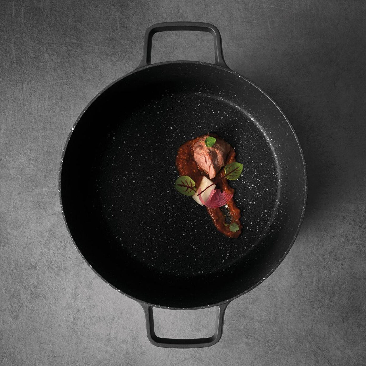Ürün Açıklaması 24 cm çaplı bu döküm tencere, lapa kıvamlı çorbalar veya uzun süre kaynayan yemekler için ideal ısı verme performansı sunar. Yüksek ısıyı eşit dağıtan gövdesi ve enerji tasarruflu cam kapağıyla yemekleriniz hızlı ve lezzetli pişer. FernoGreen kaplama, temizliği bir dokunuşla kolaylaştırırken dayanıklılığını korur. İster günlük kullanım ister özel davetler; her mutfakta profesyonel sonuç almanızı sağlar. Öne çıkan özellikler: • Temperli cam kapak • Yüksek kaliteli FernoGreen yapışmaz kaplama • Tüm ısı kaynakları (indüksiyon, gaz, elektrik) için uygundur • Enerji tasarruflu ve eşit ısı dağılımı • Kolay temizlik ve bakımı kolay yüzey Teknik Özellikler: • Hacim: 5 L • Boyutlar: Çap 24 cm x Yükseklik 15 cm x Derinlik 28 cm • Ağırlık: 2,8 kg • Malzeme: Döküm alüminyum • Üretici Garantisi: 2 Yıl